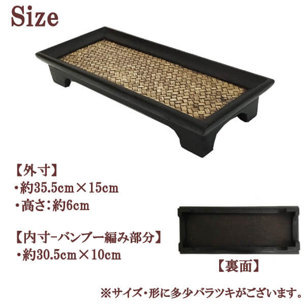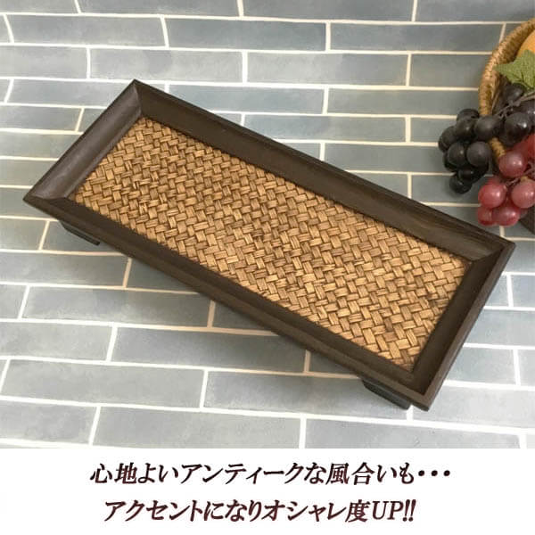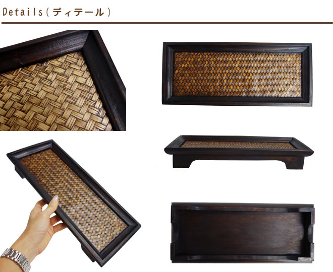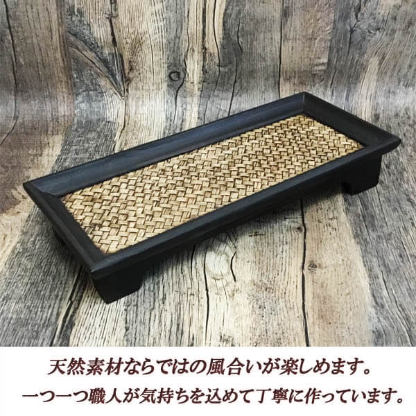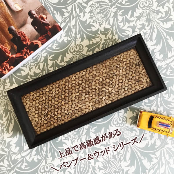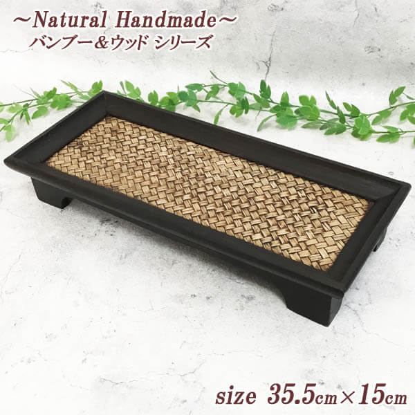 天然木に編んだ竹を張り、木のフレームをつけたトレイです。