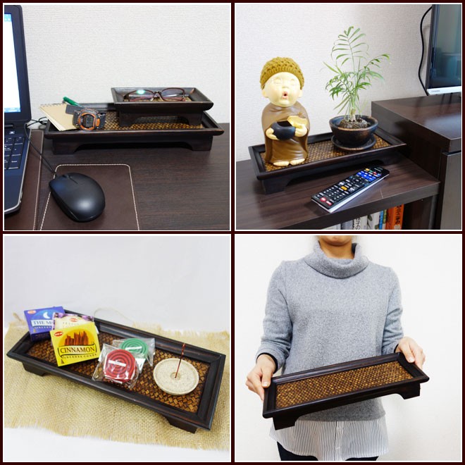 N-Chai トレイ トレー 木製 おしゃれ (35.5cm×15cm 脚付) 木 小物入れ 小物入れケース 卓上 小物収納 鍵置き 玄関 アクセサリートレイ アジアン 雑貨