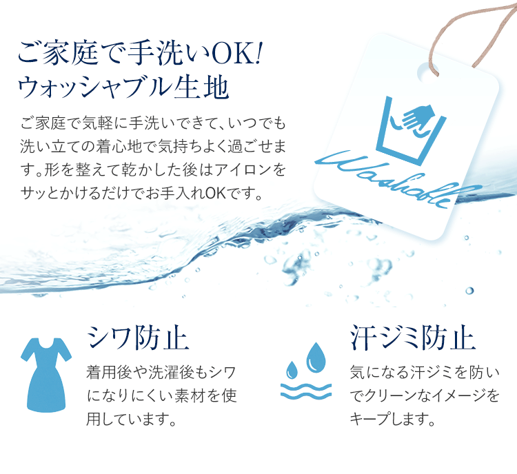 | 洗濯表示 | 手洗い可(中性洗剤)│塩素漂白不可 アイロン"弱"(あて布) |