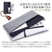 ・金封を差し込むだけで折れやシワから守ってくれる袱紗です。すっきり薄型でかさばらず、出し入れも簡単。スマートで余裕ある、ワンランク上の男の装いを演出します。スリットが二箇所あるので名刺や念珠も収納できます。