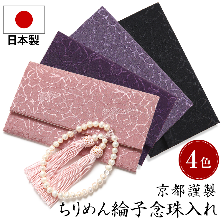 [念珠袋 数珠入れ 日本製 弔事 葬儀 法事 法要 通夜 念珠 数珠 念珠入れ 数珠袋 念珠ケース 数珠ケース 巾着 冠婚葬祭 かわいい おしゃれ ちりめん 綸子 京都 箱付 箱入り 男性用 女性用 紫 ピンク パープル ブラック 黒 JC805 ゆうパケット対応]