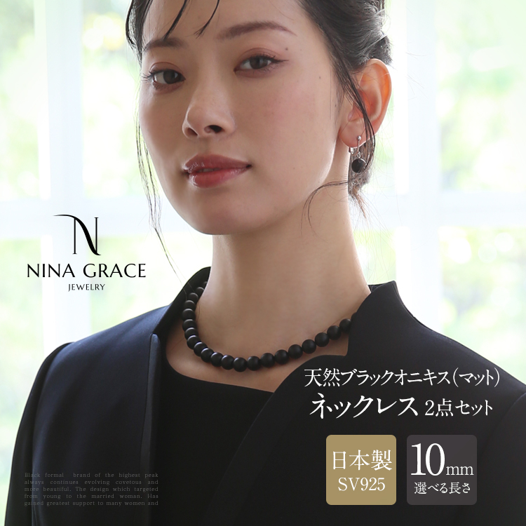 [オニキス ネックレス 2点セット 10.0mm 艶なし マット 保証書付 ブラックオニキス ピアス イヤリング ケース アクセサリー 天然石 パワーストーン レディース フォーマル 冠婚葬祭 葬式 お通夜 法事 入園式 卒園式 入学式 卒業式 プレゼント ブラック 黒 NGR-JN5102 送料無料]