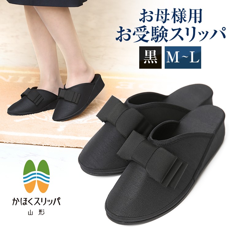 [お受験 スリッパ 日本製 黒 母 レディース リボン 受験 面接 説明会 学校見学会 入学式 入園式 卒業式 卒園式 保護者会 授業参観 参観日 お受験スリッパ ヒール 室内履き かわいい おしゃれ 母親 ママ 女性用 フォーマル M L 無地 ブラック SP-08]