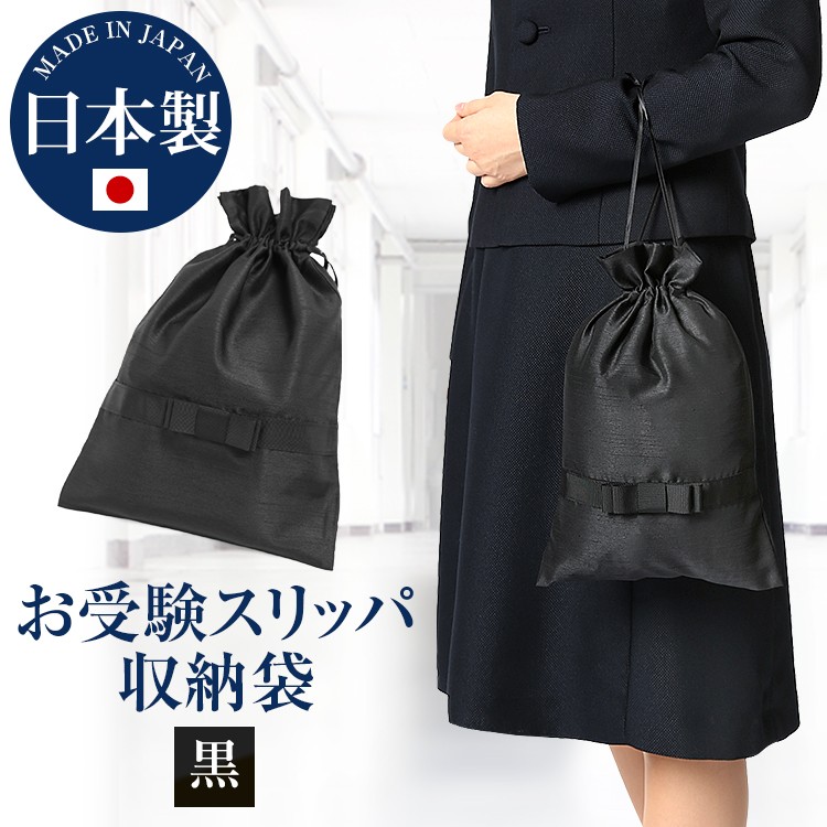 お受験スリッパ 収納袋 ママ 母 お受験 スリッパ 黒 日本製 お受験用スリッパ スリッパ袋 リボン 入学式 卒業式 入園式 卒園式 面接 SPC-01 ゆうパケット対応