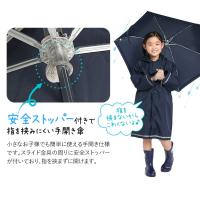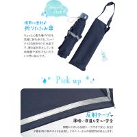 車のライト等を反射するテープ付きで通園通学も安心!ちょっと心配な曇りの日も気軽に持ち歩けるコンパクトな折りたたみ傘です。キャラクターやロゴが無い紺色無地でお受験にもご使用いただけます。