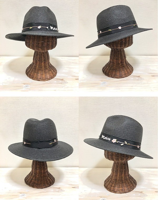 フラワー刺繍とラインストーンがキュートなブレード中折れハット☆