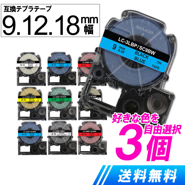 テプラ テープ 9mm 12mm 18mmが選べる3個セット キングジム用 テプラPRO 互換テープカートリッジ 自由選択 強粘着 爆買
