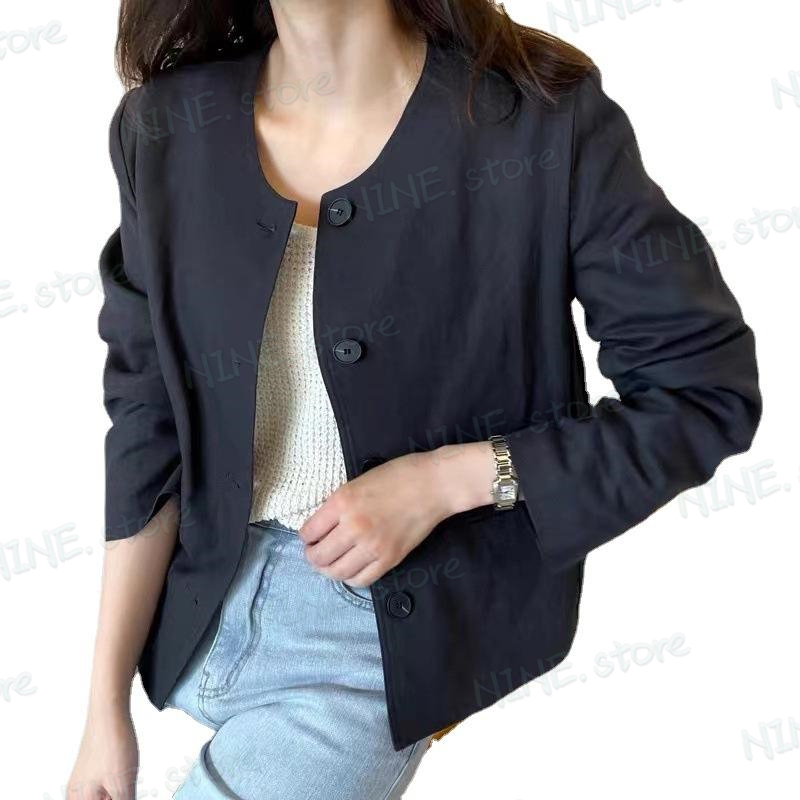ノーカラージャケット レディース 夏 アウター 長袖 ミディアム丈 羽織り きれいめ 韓国風 ミセス 通勤 20代 30代 40代 新作 おしゃれ