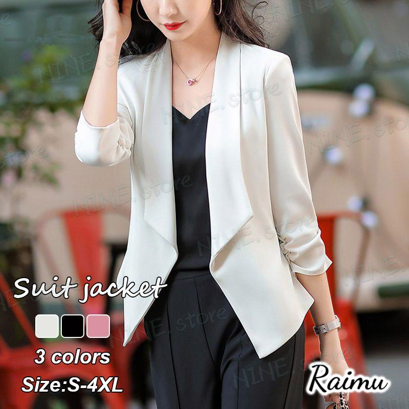 【連携キーワード】:テーラードジャケット レディース 40代 七分袖スーツジャケット 黒 ブレザーコート 薄手スーツ ゆったりアウター 春夏 カジュアル韓国風 通勤 OL オフィス