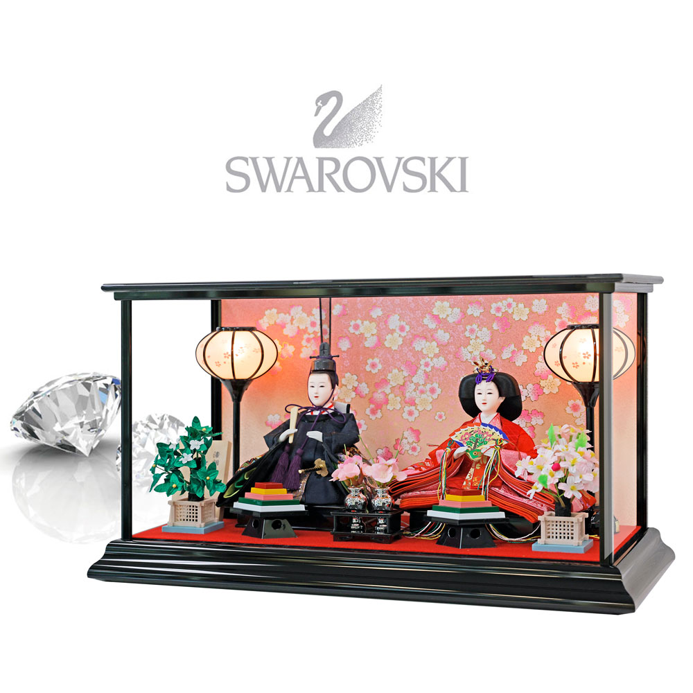 雛人形 ひな人形 おしゃれ かわいい コンパクト 漆調ケース飾り 親王飾り おしゃれプレミアムスワロフスキー雛人形4点セット