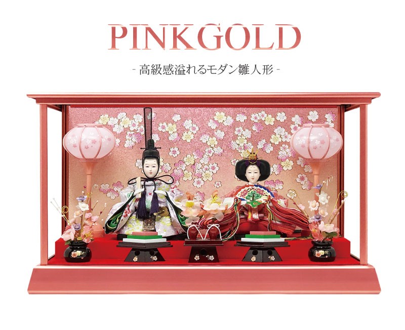 雛人形 ひな人形 ピンクゴールドケース コンパクト 雛 ケース飾り 親王飾り