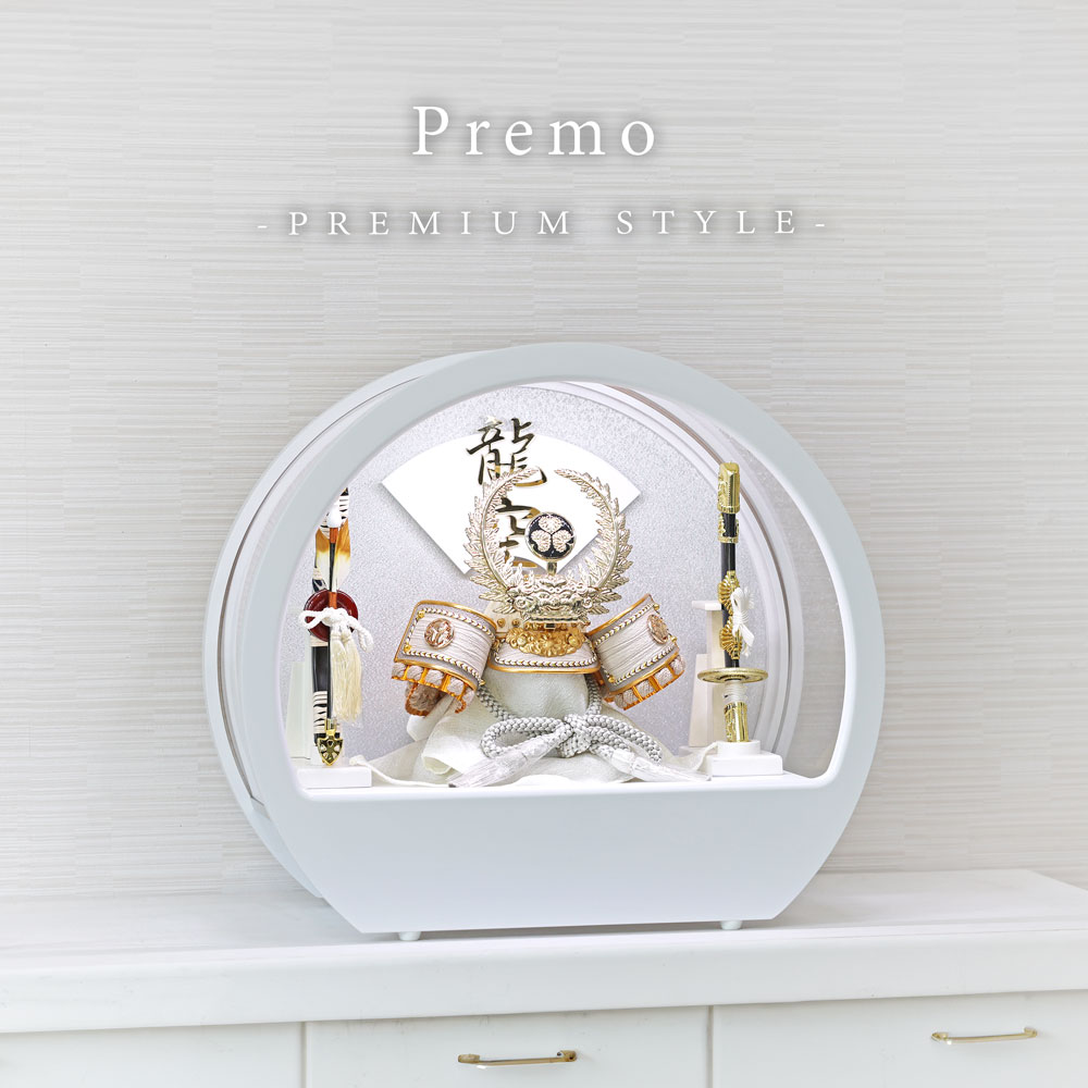くすみカラーの五月人形 LEDライトケース コンパクト Premo 白 木製ケース おしゃれ 兜飾り 端午の節句 5月人形 インテリア