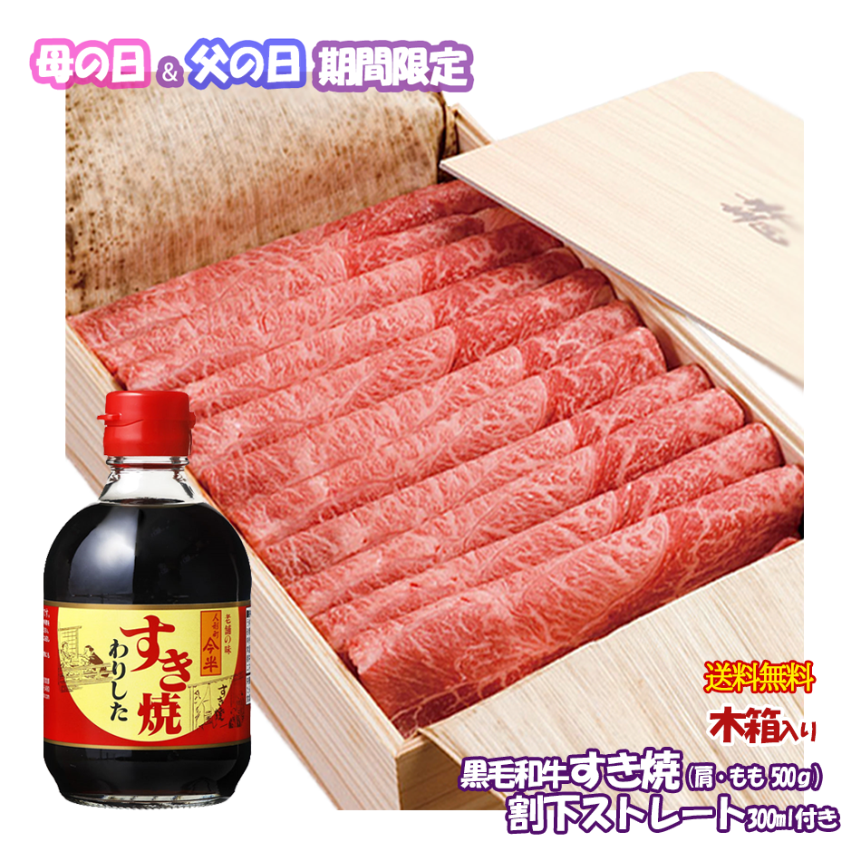 | 内 容 | ■黒毛和牛すき焼き用(肩・もも)500g ■すき焼きわりしたストレートタイプ(300ml)×1本 ※原材料の一部に大豆、小麦を含む |