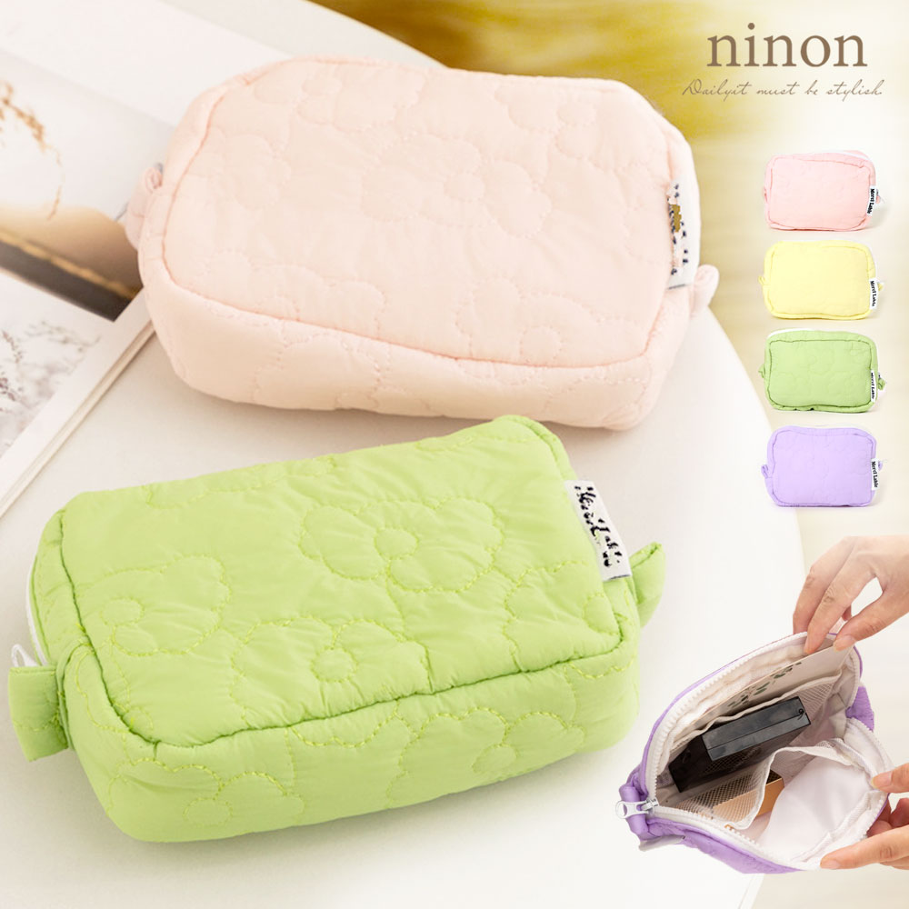 【内ポケット付/ふっくら軽い♪/フラワーキルティングが大人かわいいデザイン/メイクポーチ/トラベルポーチ】