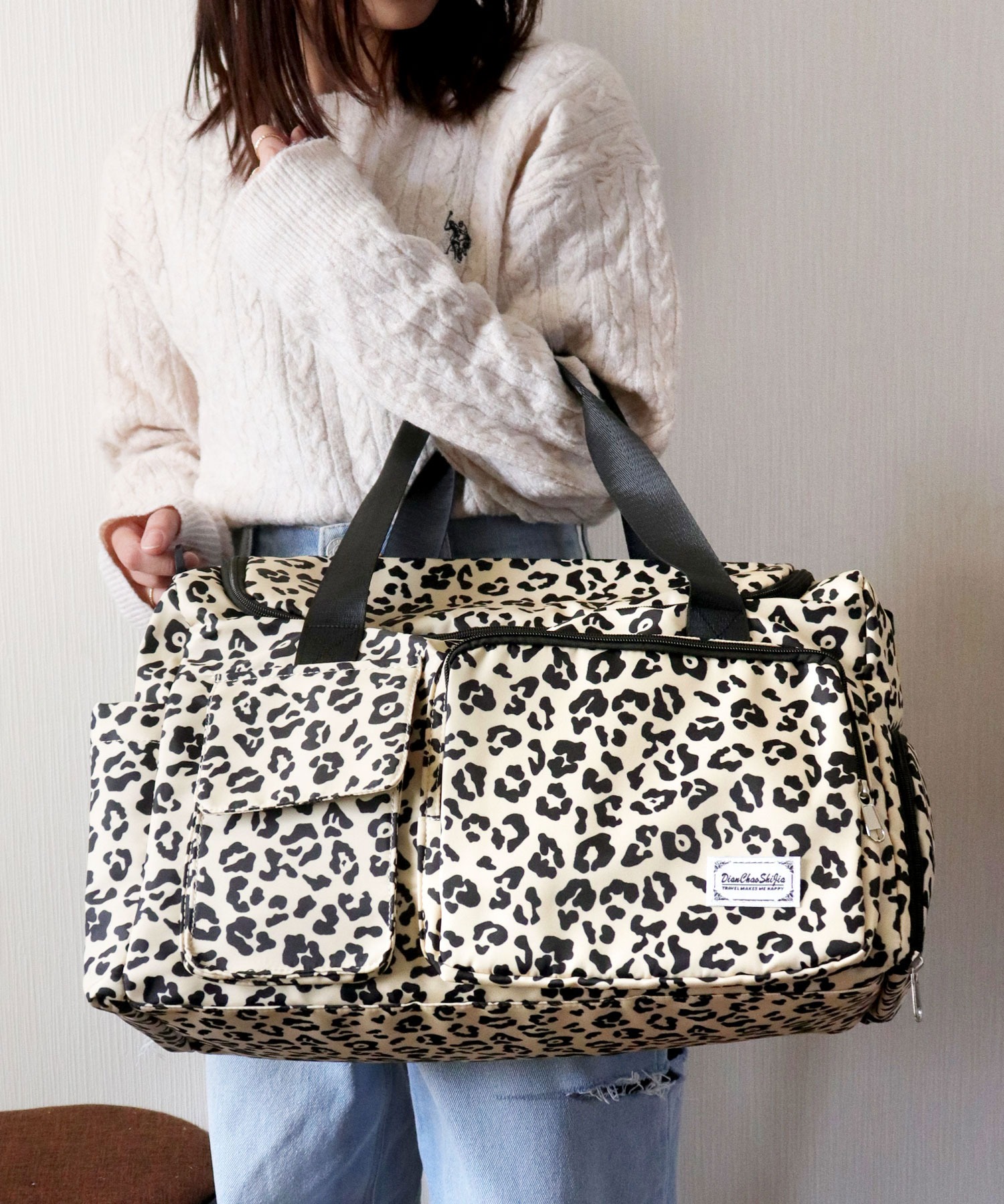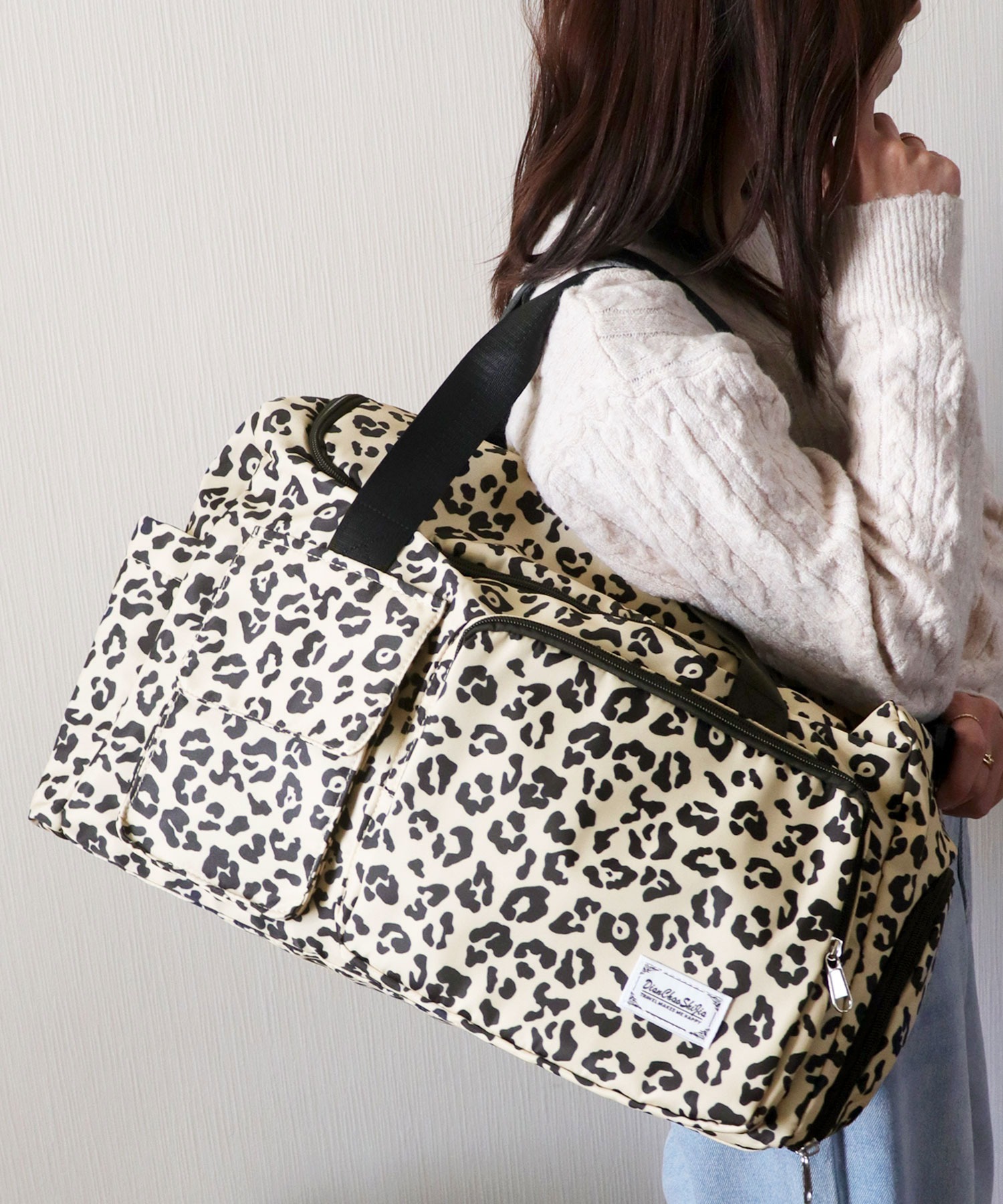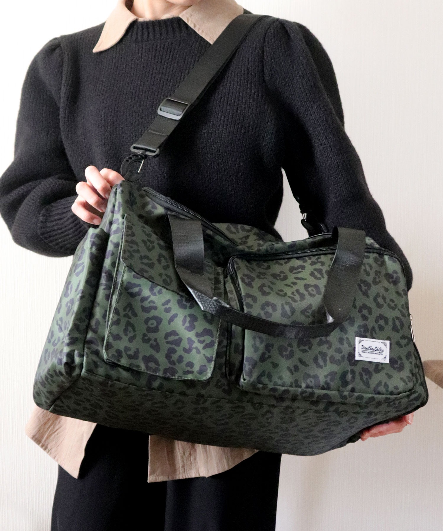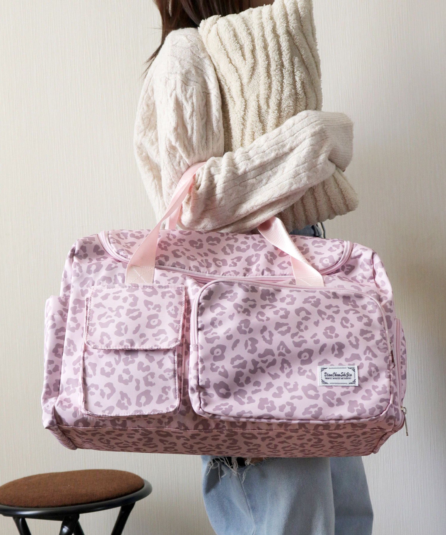 【大容量!撥水オックスフォード使用/大人かわいいヒョウ柄ボストンバッグ/旅行カバン/ショルダーバッグ】