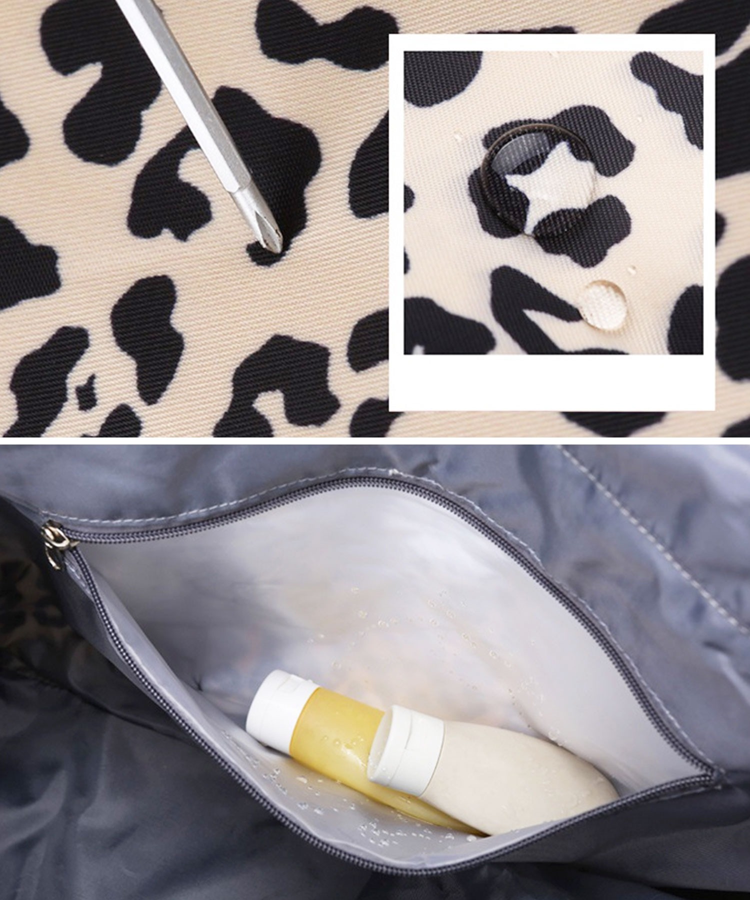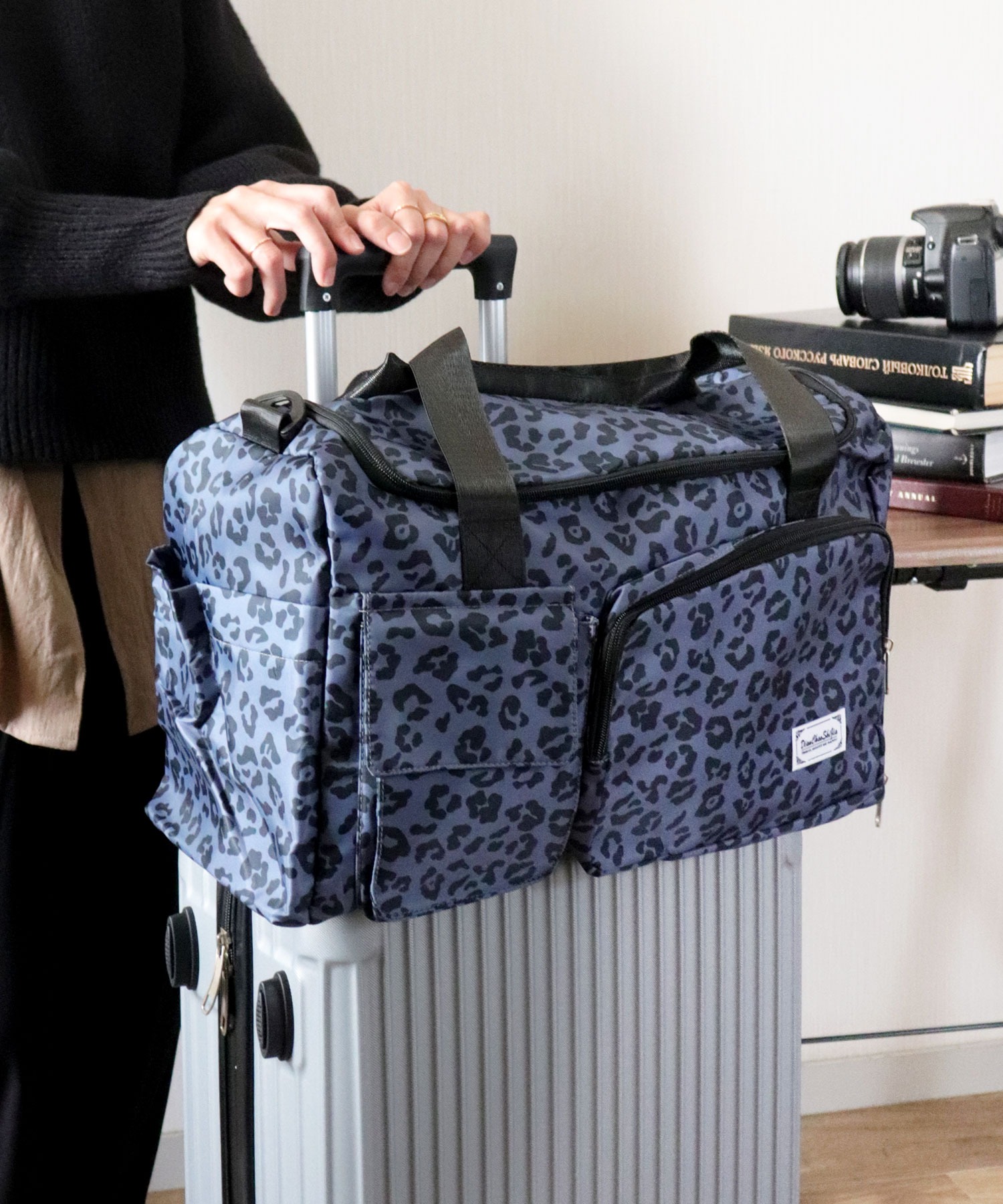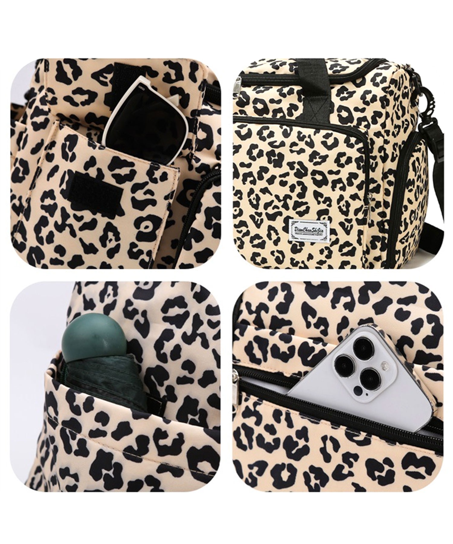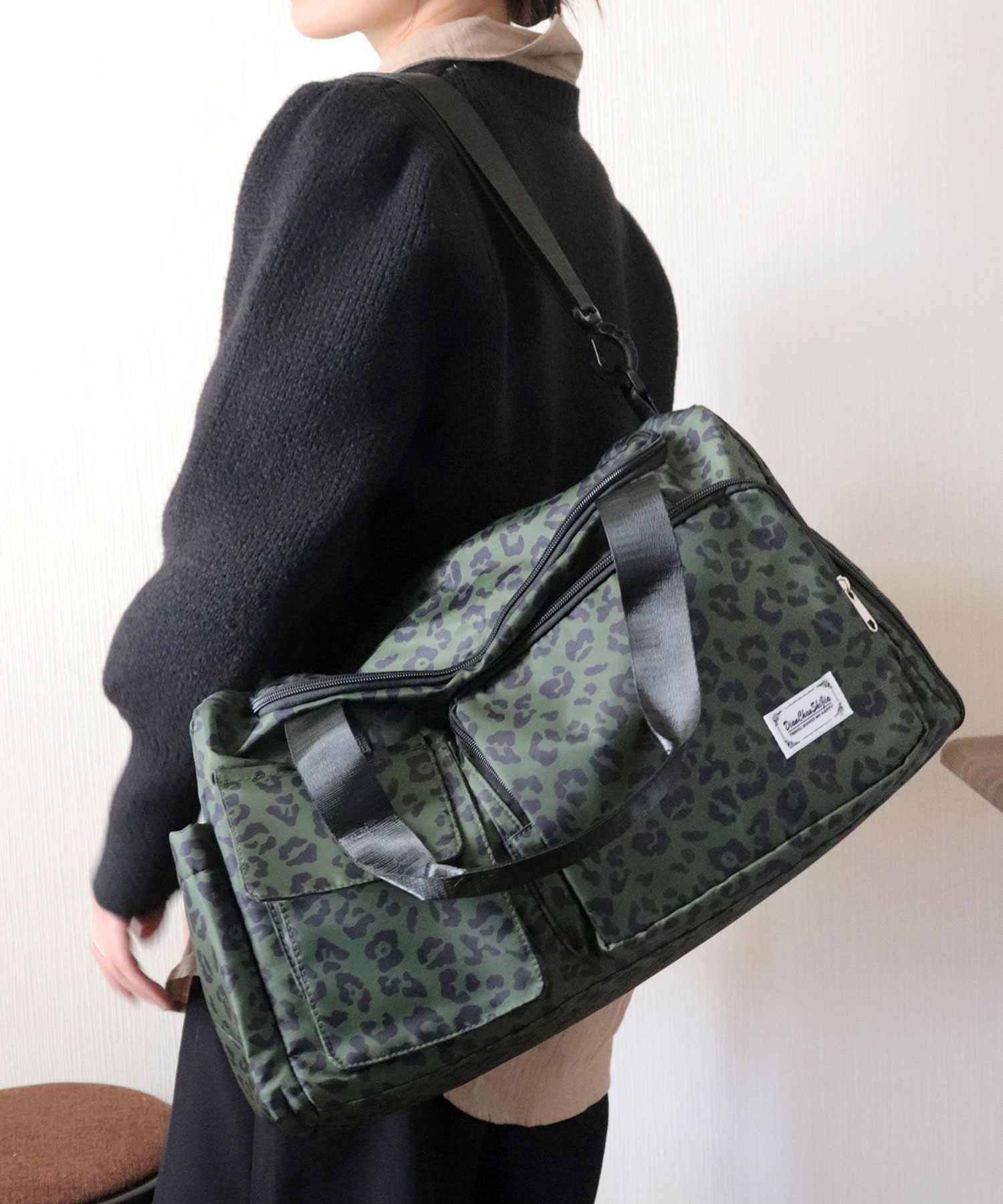 【大容量!撥水オックスフォード使用/大人かわいいヒョウ柄ボストンバッグ/旅行カバン/ショルダーバッグ】