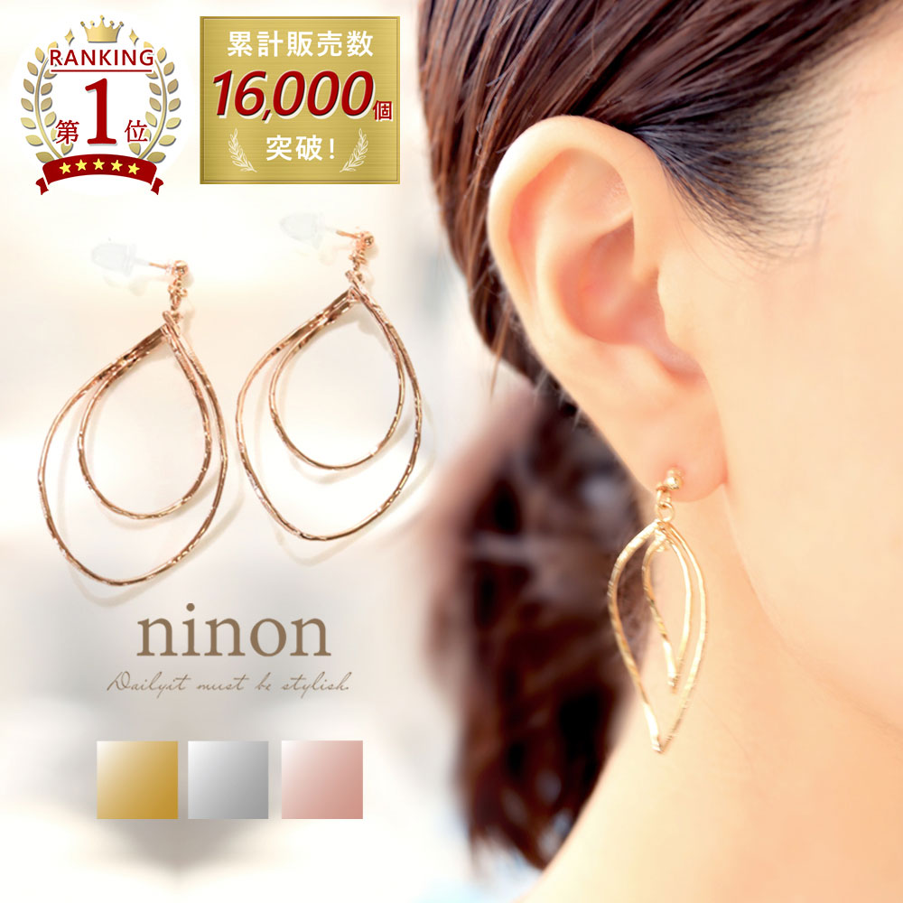 耳元で煌めくフープの重なりが素敵なピアスです。