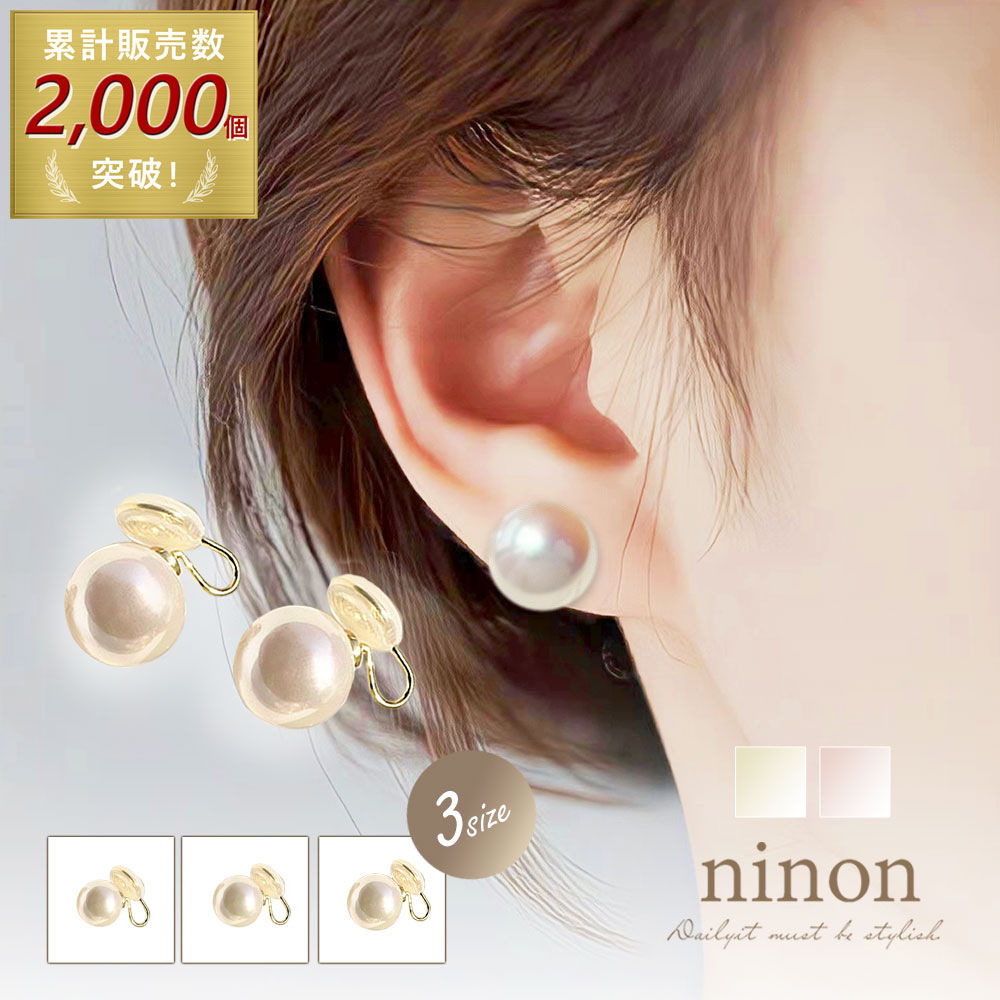 イヤリング 大ぶり パール 樹脂 3サイズ ノンホールピアス シリコンカバー 14mm 12mm 10mm 結婚式 痛くない シリコンキャッチ ノンホール ノンホールイヤリング