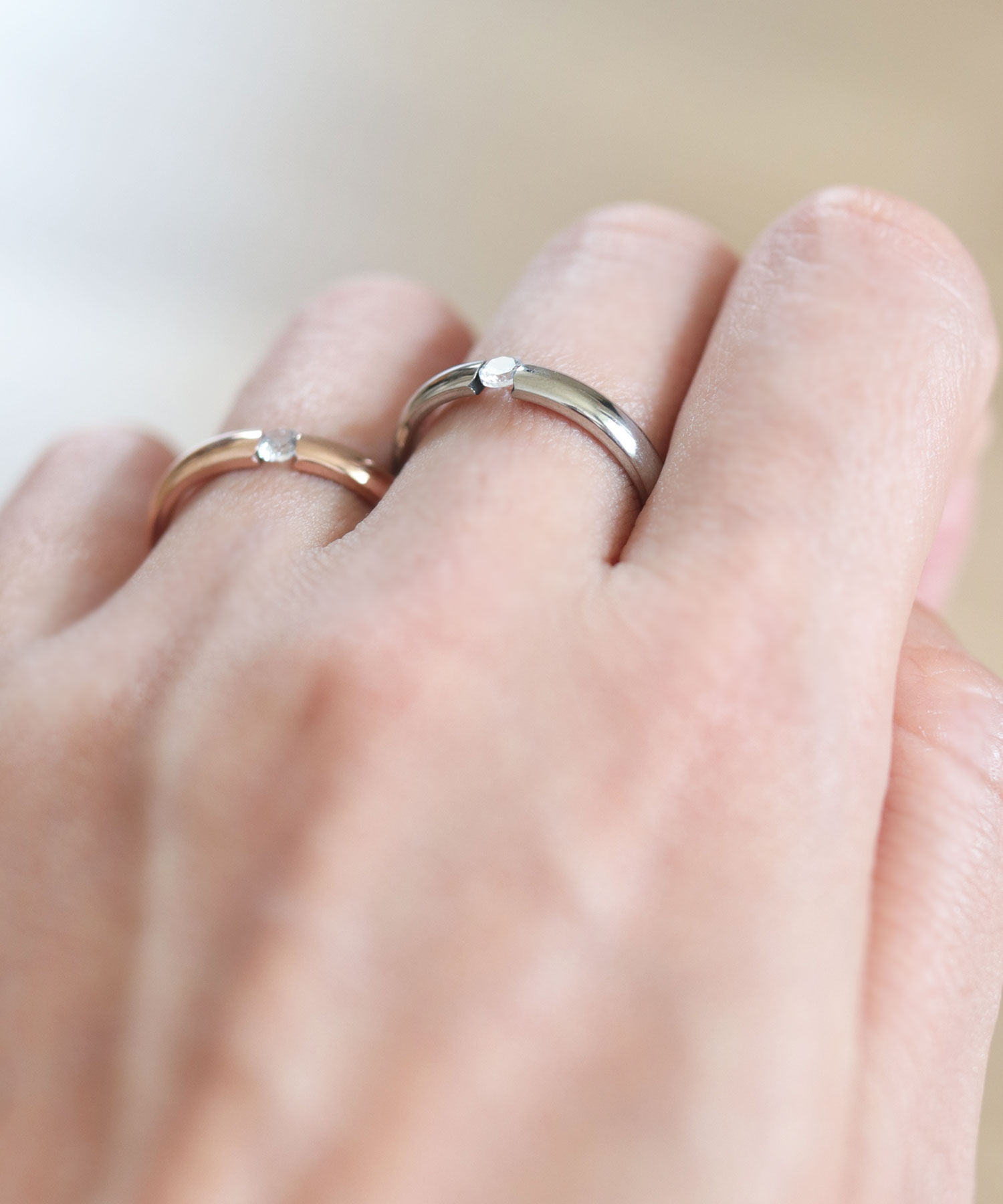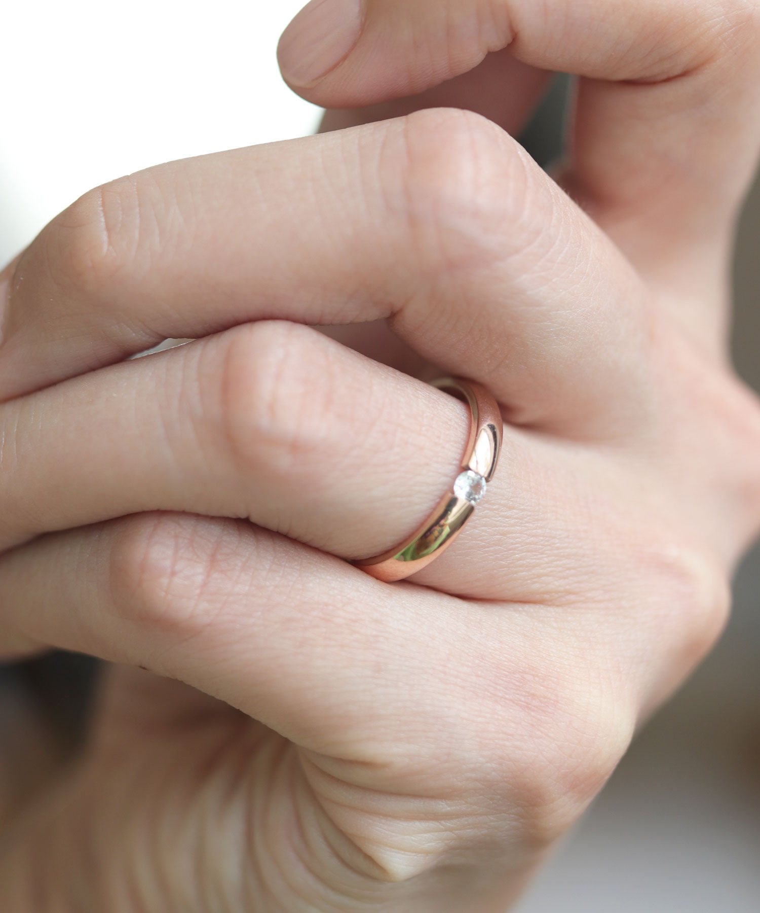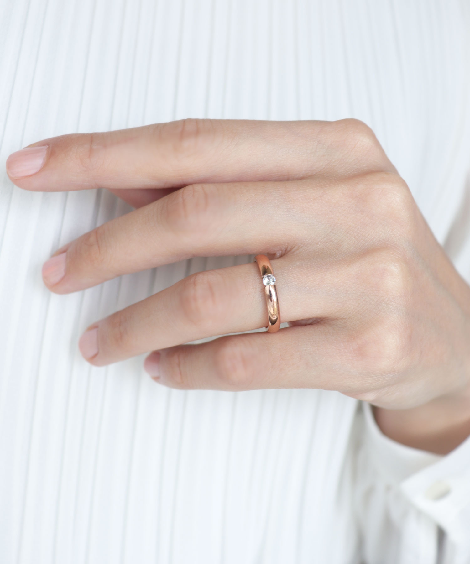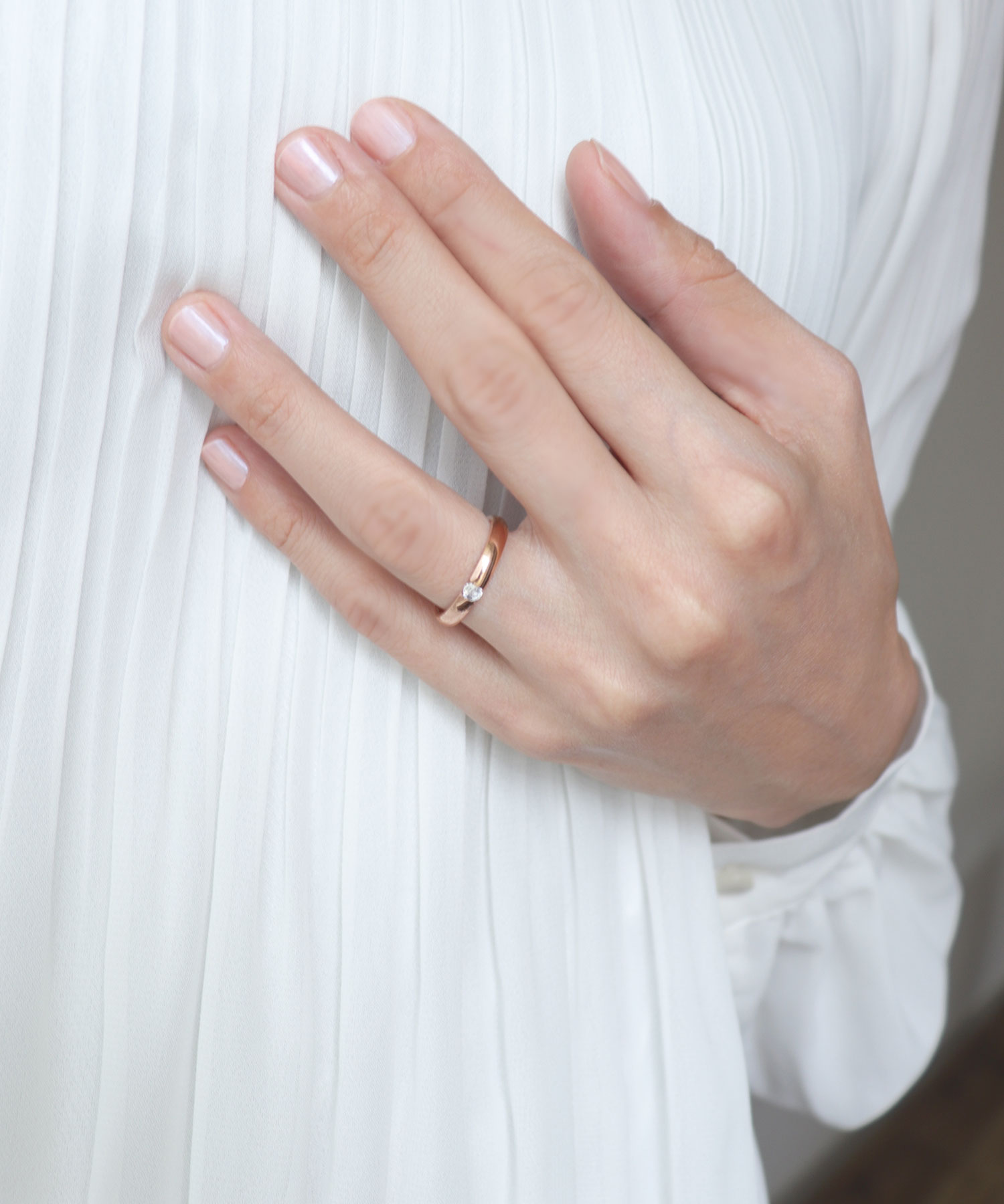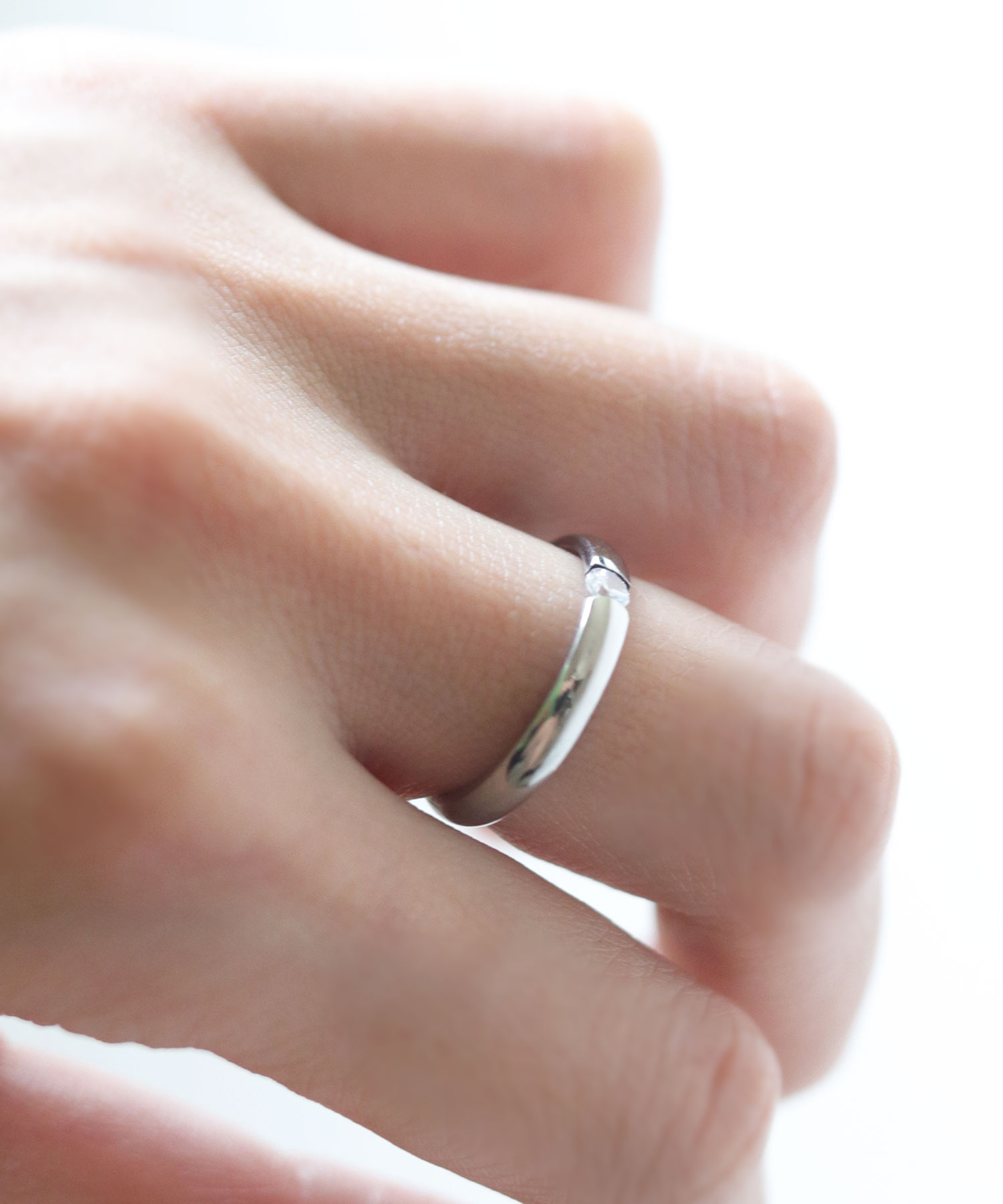 【一粒ダイヤが手元で煌めくリング】
