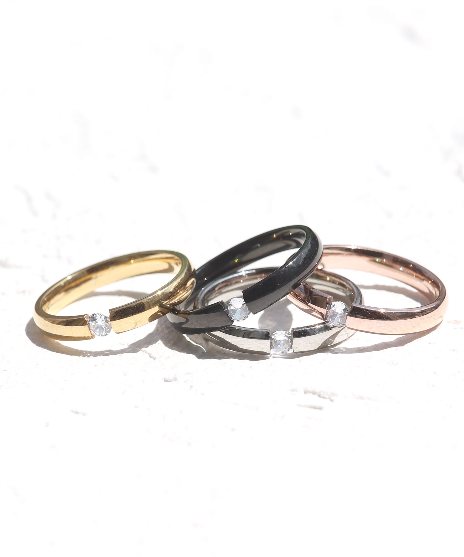 リング レディース メンズ 指輪 シンプル 細い ステンレス アレルギー対応 華奢 大きい 細め おしゃれ ファッション ブラック つけっぱなし 一粒 ジルコニア