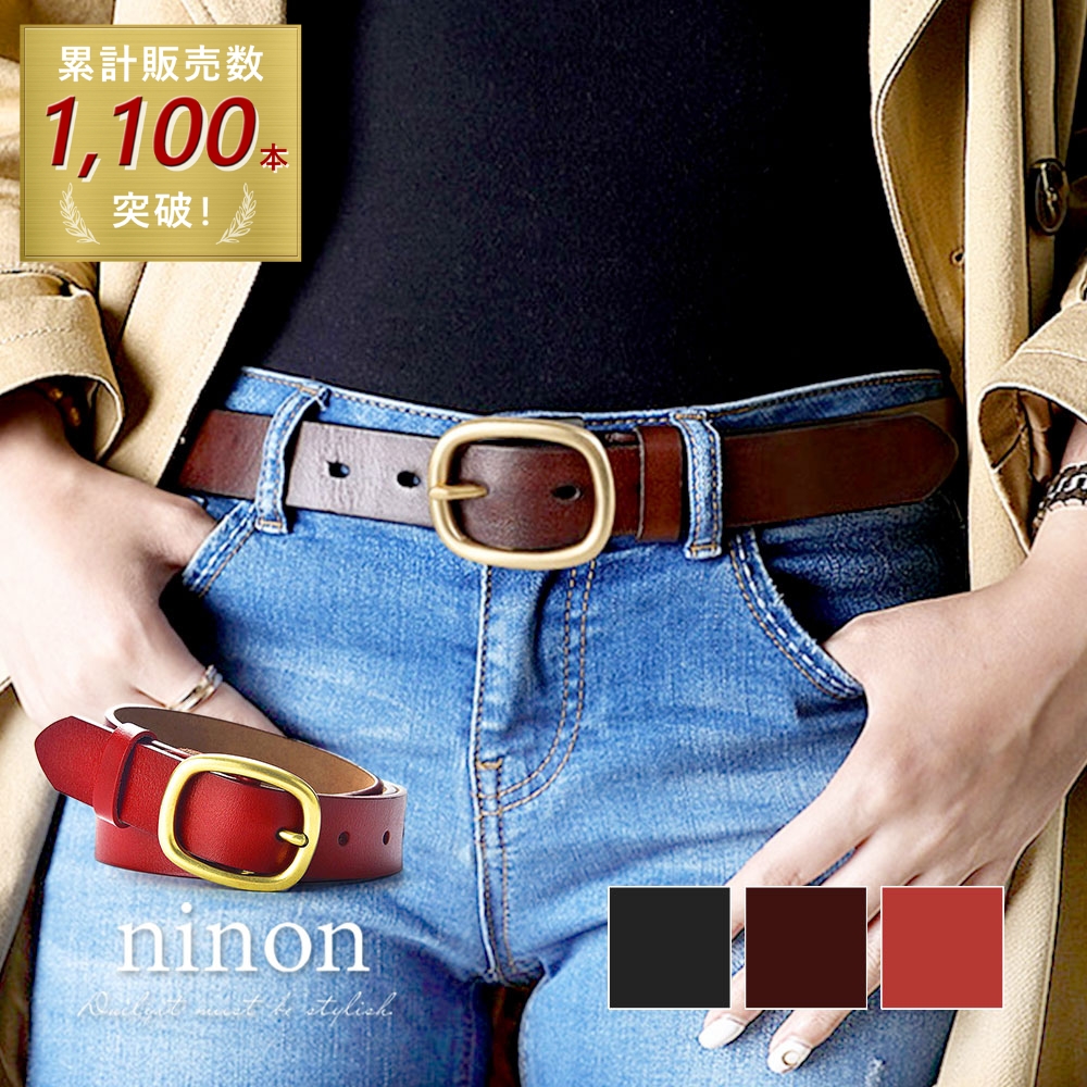 【牛革/細身にスラっと見せるシンプルベルト】