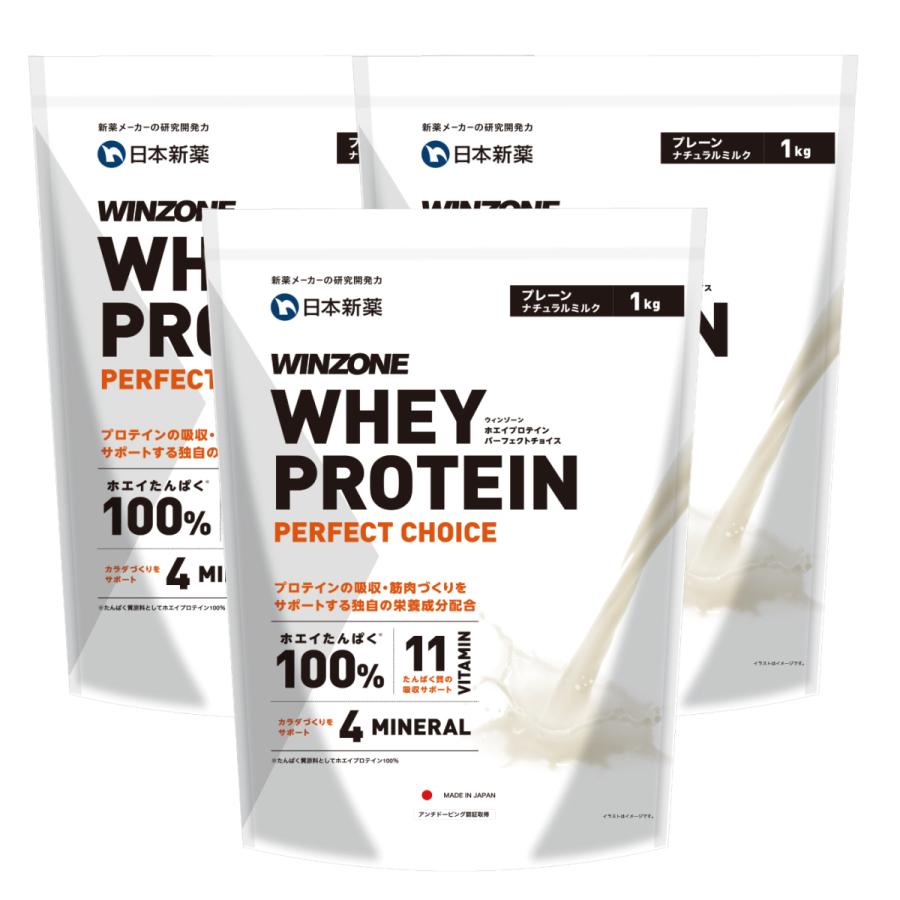 プロテイン ホエイ ウィンゾーン 3kgセット プレーン3袋 1kg×3 WINZONE 女性 男性 人気 WPC コスパ 筋トレ 飲みやすい BCAA EAA ビタミン ミネラル