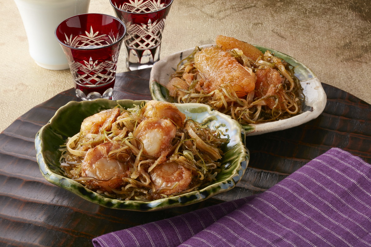 | 原材料 | 【ほたて入り明太松前】ほたて(国産)、昆布、いか加工品(いか、砂糖、食塩)、?油(食塩、脱脂加工大豆、小麦、大豆)、砂糖、すけとうだらの卵巣、醗酵調味料、たん白加水分解物、清酒、唐辛子、みりん、食塩、ほたてエキス、昆布エキス、魚介エキス、かつお節、さば節、柚子胡椒、レモン果汁、梅肉、酵母エキス、ほうじ茶/ソルビット、調味料(アミノ酸等)、酵素、増粘多糖類、pH調整剤、酸化防止剤(ビタミンC) 、トレハロース、ナイアシン、発色剤(亜硝酸Na)、酒精、(一部に小麦・かに・いか・大豆・さば・鶏肉を含む) 【数の子明太松前】昆布(国産)、数の子、?油(食塩、脱脂加工大豆、小麦、大豆)、すけとうだらの卵巣、砂糖、いか加工品(いか、砂糖、食塩)、醗酵調味料、清酒、たん白加水分解物、唐辛子、水飴、みりん、食塩、昆布エキス、魚介エキス、かつお節、さば節、柚子胡椒、レモン果汁、梅肉、酵母エキス、ほうじ茶/ソルビット、調味料(アミノ酸等)、酵素、増粘多糖類、pH調整剤、酸化防止剤(ビタミンC) 、トレハロース、ナイアシン、発色剤(亜硝酸Na)、酒精、(一部に小麦・かに・大豆・いか・さば・鶏肉を含む) |