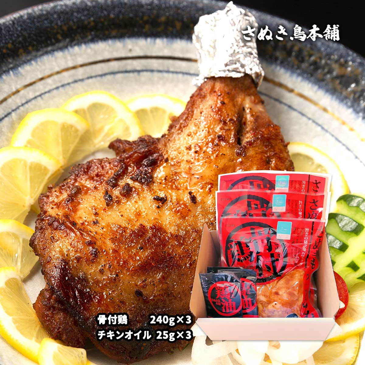 チキン さぬき鳥本舗 さぬき骨付鶏 3本セット 骨付鶏240g×3、チキンオイル25g×3袋 /骨付きチキン 四国 香川県 さぬき名物 丸亀名物 チキンオイル チーユ クリスマスチキン 無添加 一鶴 レトルト 名物料理 B級グルメ おつまみ キャンプ パーティー
