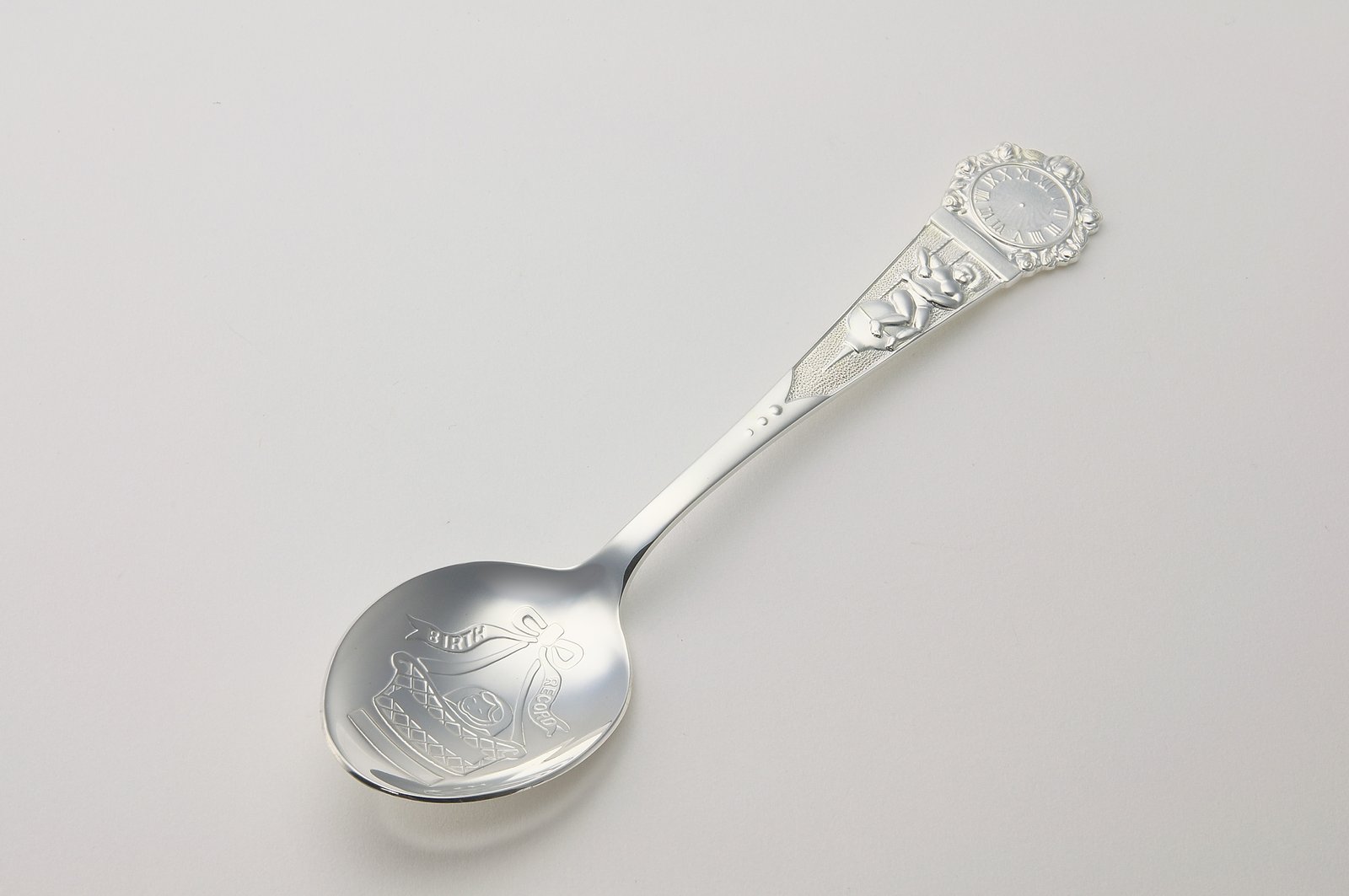 お子様のお誕生の記録を彫り込んだこのスプーンは、