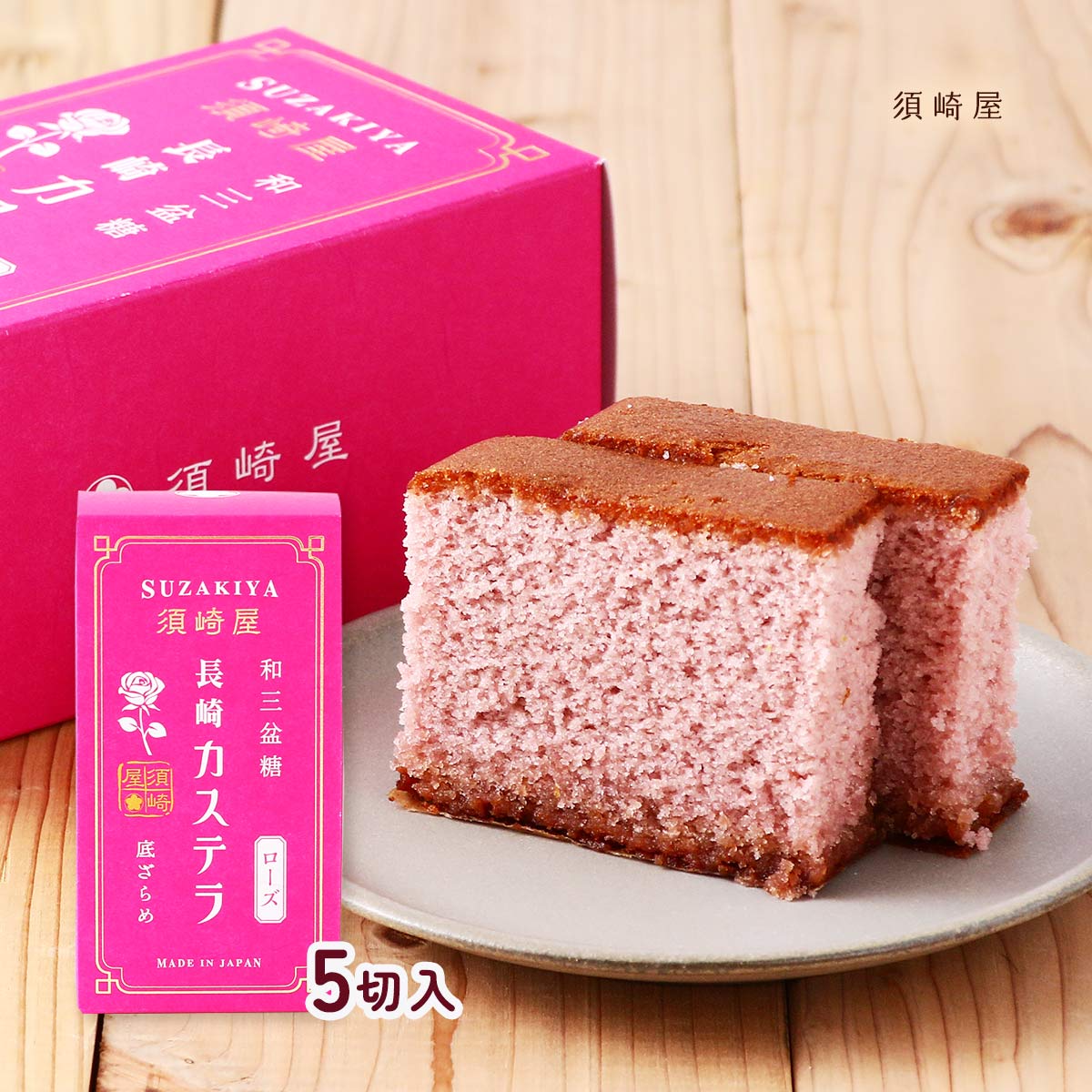 カステラ 須崎屋 和三盆糖 長崎カステラ ローズ 5切入 /スイーツ カステラ かすてら カステーラ 長崎県 和三盆糖 白 ザラメ ざらめ おみやげ お土産 おやつ デザート ティータイム 焼菓子 須崎屋 老舗 腹持ち 栄養 五三焼き島原半島 国産 こだわり 厳選素材 バラ 薔薇 ローズカステラ
