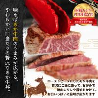 ローストビーフにしたあか牛肉を贅沢にご飯に盛って、お好みで焼肉のタレや醤油をかけてください。