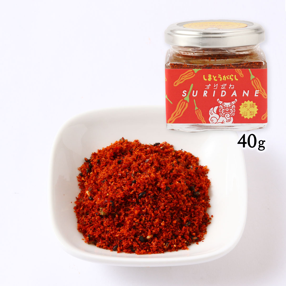 山梨の伝統七味「すりだね」に島とうがらしを加えた「島とうがらし すりだね」です。