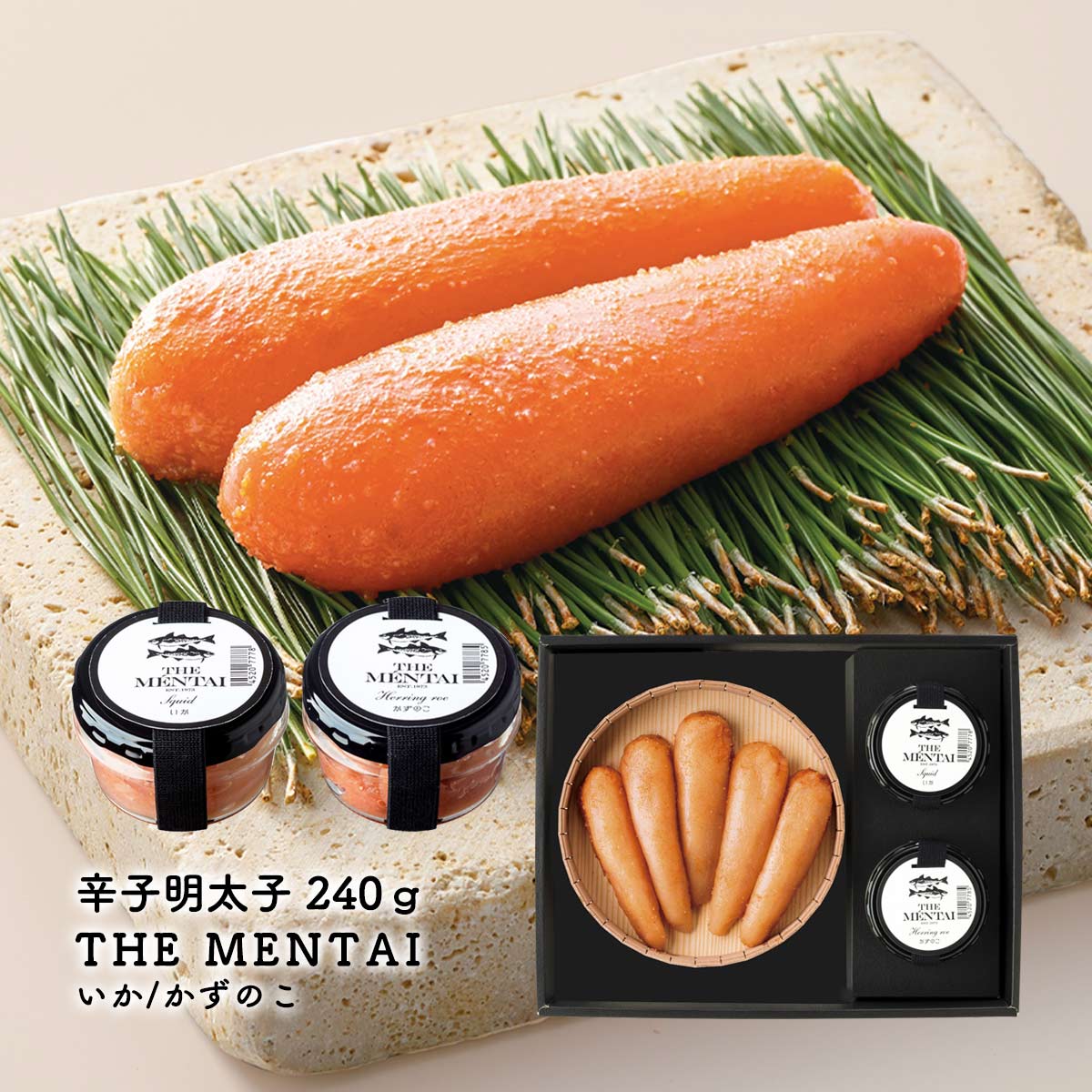 | 原材料 | 【福撰めんたいこ】すけとうだらの卵巣(ロシア又は米国)、醸造調味料(米醸造液、アルコール、ぶどう糖、発酵調味料、食塩)、食塩、魚介エキス、唐辛子、魚醤調味料、みりん、酵母エキス/甘味料(ソルビット)、調味料(アミノ酸等)、酸化防止剤(ビタミンC)、ナイアシン、酵素、発色剤(亜硝酸Na)、(一部に大豆を含む)【THE MENTAI いか】いか、すけとうだらの卵巣、醸造調味料(米醸造液、アルコール、ぶどう糖、発酵調味料、食塩)、食塩、発酵調味料、みりん、蛋白加水分解物、鰹節エキス、唐辛子、魚醤調味料/甘味料(ソルビット、カンゾウ)、調味料(アミノ酸等)、酸化防止剤(V.C)、ナイアシン、着色料(赤102、黄5、赤3、アナトー)、発色剤(亜硝酸Na)、(一部にいか・大豆を含む)【THE MENTAI かずのこ】すけとうだらの卵巣(国産)、数の子、醸造調味料(米醸造液、アルコール、ぶどう糖、発酵調味料、食塩)、みりん、食塩、蛋白加水分解物、鰹節エキス、唐辛子、魚醤調味料/甘味料(ソルビット、カンゾウ)、調味料(アミノ酸等)、酸化防止剤(V.C)、ナイアシン、着色料(赤102、黄5、赤3、アナトー)、発色剤(亜硝酸Na)、(一部に大豆を含む) |