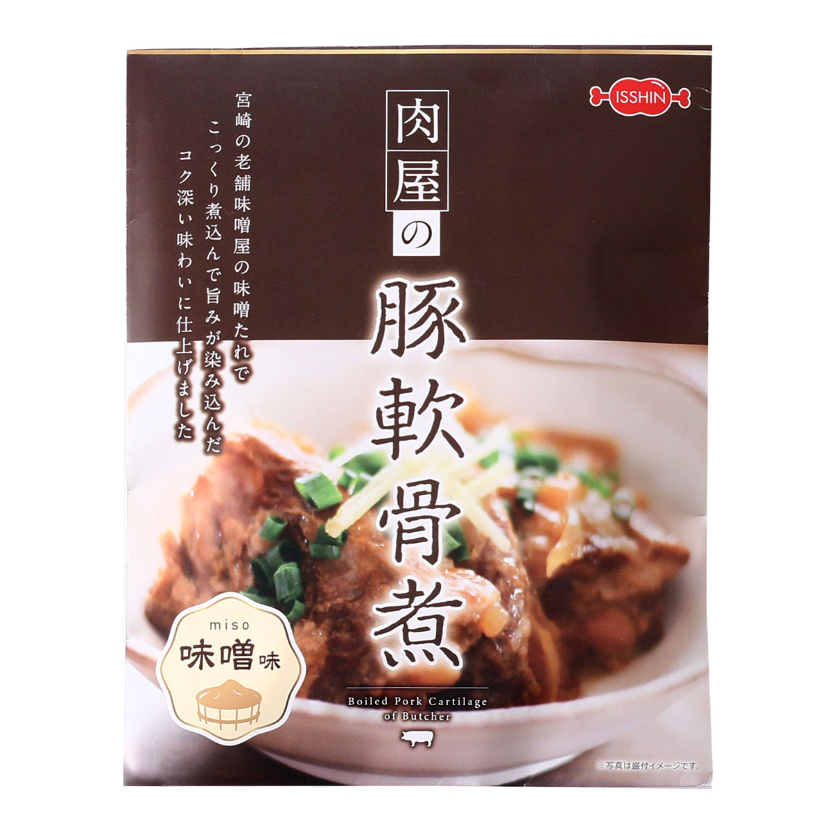 宮崎の老舗味噌屋の味噌たれでこっくり煮込んで旨味が染み込んだコク深い味わいに仕上げた豚軟骨煮です。