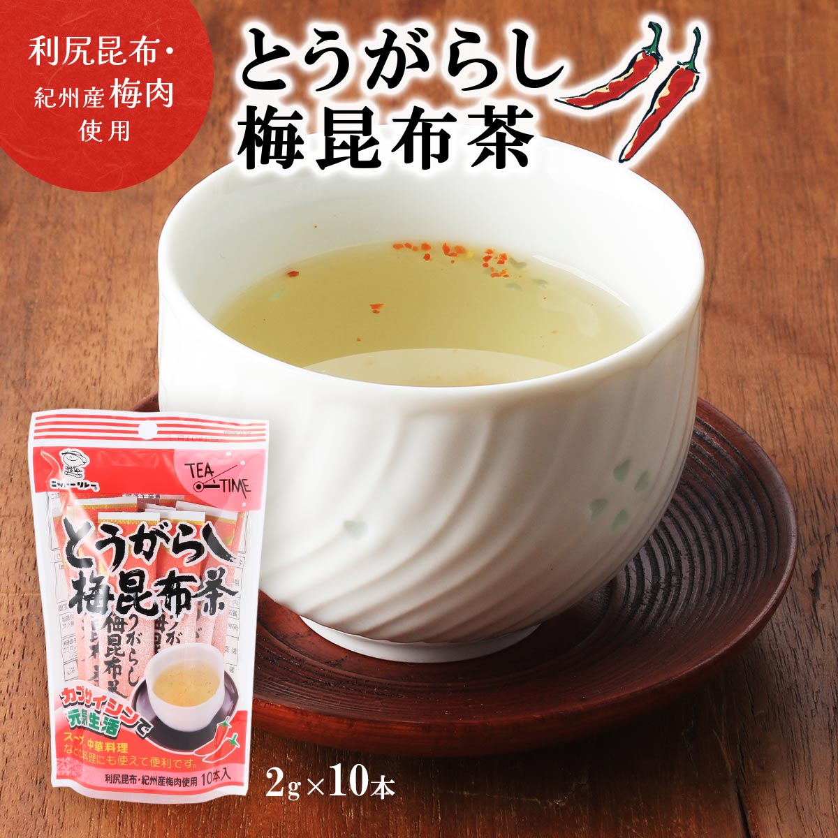 さっぱりとした梅昆布茶に唐辛子を加え、ピリッと辛い風味に仕上げました。