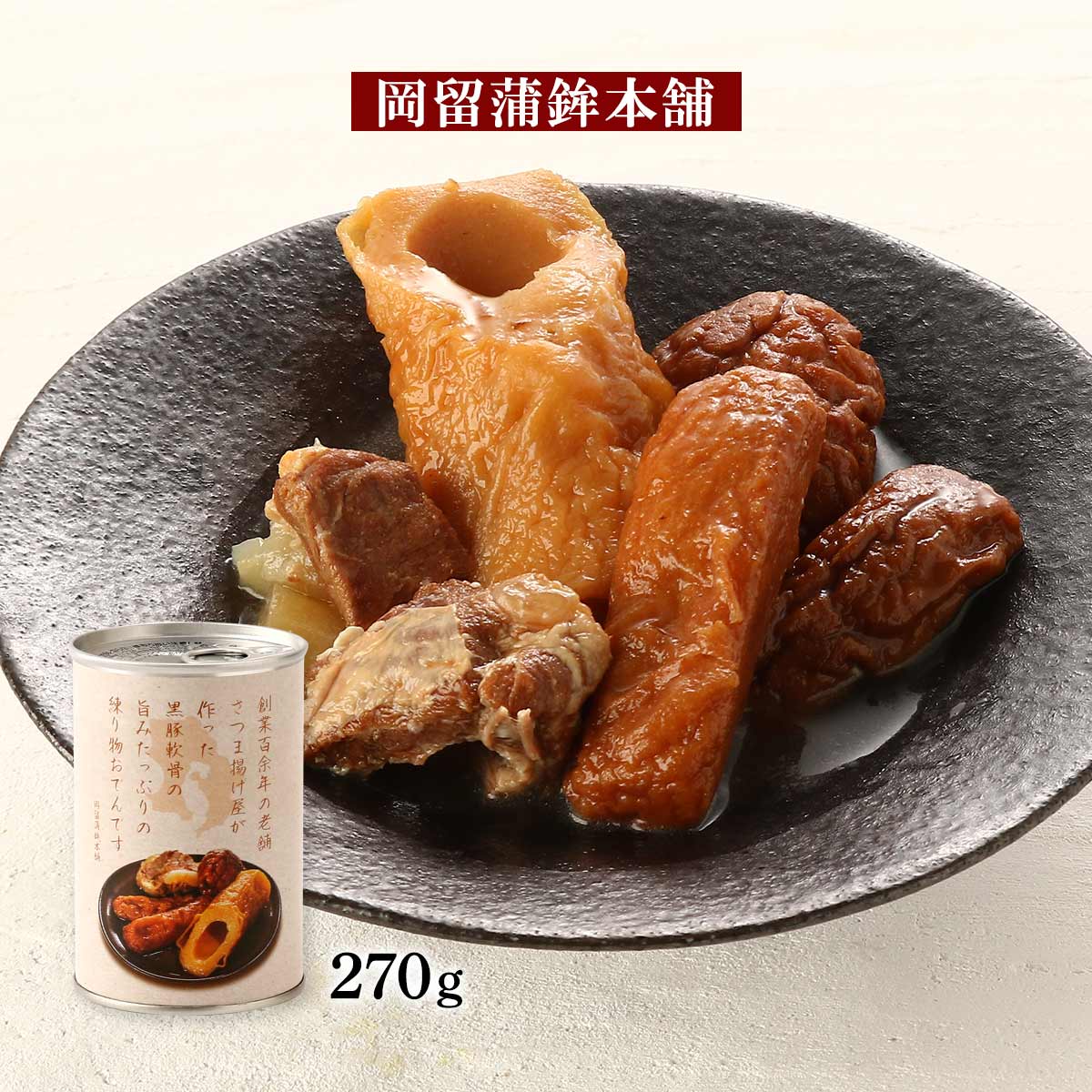 | 原材料 | 魚肉(外国産及び国内産)、豚軟骨(鹿児島県産)、砂糖、豆腐、卵白、白だし(食塩、薄口醤油等)、玉ねぎ、小麦たん白、みりん風味調味料、食塩、地酒、魚肉エキス、デキストリン、揚げ油(菜種油)でん粉、食物繊維、植物油脂、ぶどう糖、風味原料(煮干粉末)酵母エキス、たん白加水分解物/ソルビトール、リン酸塩Na、加工でん粉、調味料(アミノ酸等)、保存料(ソルビン酸等)酒精、(一部に小麦・卵・さば・大豆・豚肉・ゼラチンを含む。) |