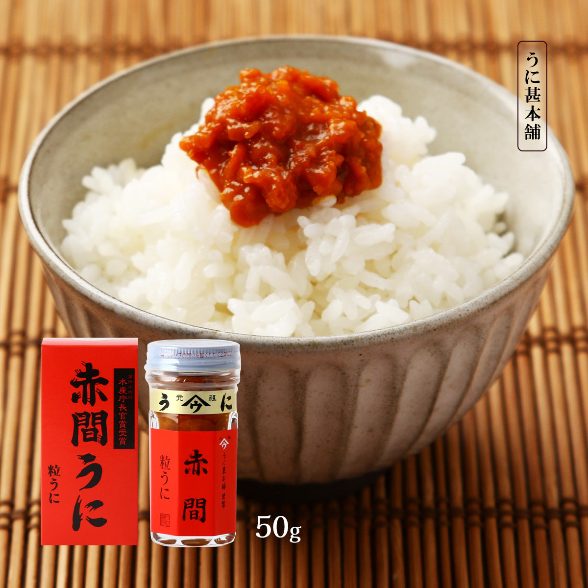 ウニ瓶 うに甚本舗 赤間うに 50g /ウニ 瓶詰め おつまみ 粒うに 高級うに お茶漬け あて 家呑み トッピング 赤間神宮 ムラサキウニ バフンウニ