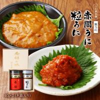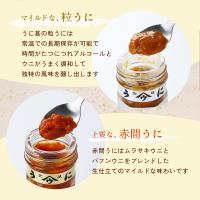 | 原材料 | 【赤間うに】塩うに(うに(チリ産、韓国産)、食塩)、エチルアルコール/調味料(アミノ酸) 【粒うに】塩うに(うに(チリ産、韓国産)、食塩)、砂糖、エチルアルコール/調味料(アミノ酸)、増粘剤(グァーガム)、カロチン色素 |