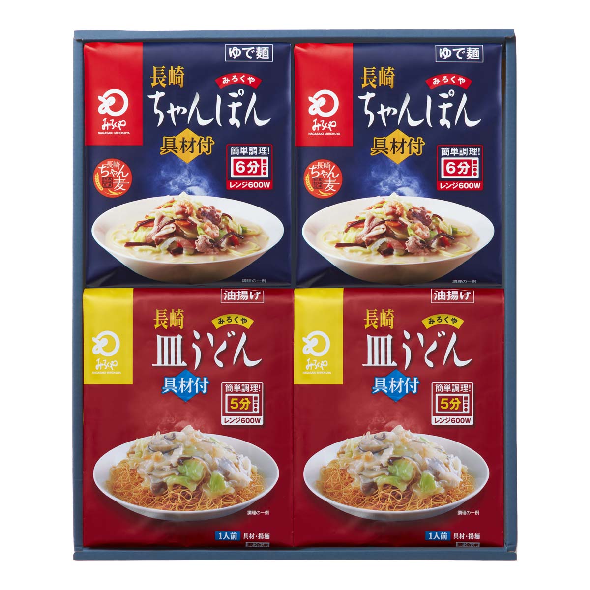 | 内容量 | レンジでちゃんぽん 315g(めん 140g、具材 140g、スープ 35g)、レンジで皿うどん RS-33 300g(具材 240g、めん 60g)、各2人前 |
