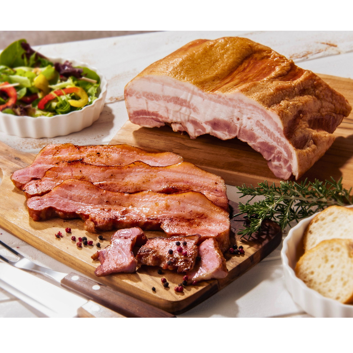 ジューシーな旨味があふれ出す、くせやいやみの一切ない、素材な味が決め手の「城川ベーコン」をお楽しみください。