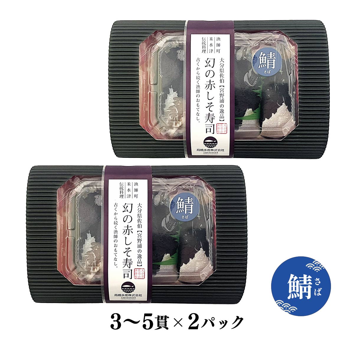 寿司 高橋水産 赤しそ寿司 真さば 3〜5貫×2パック 箱・保冷剤付 /海鮮 寿司 国産 大分県 冷凍 宮野浦 大葉 しそ 鮮魚 サバ 鯖