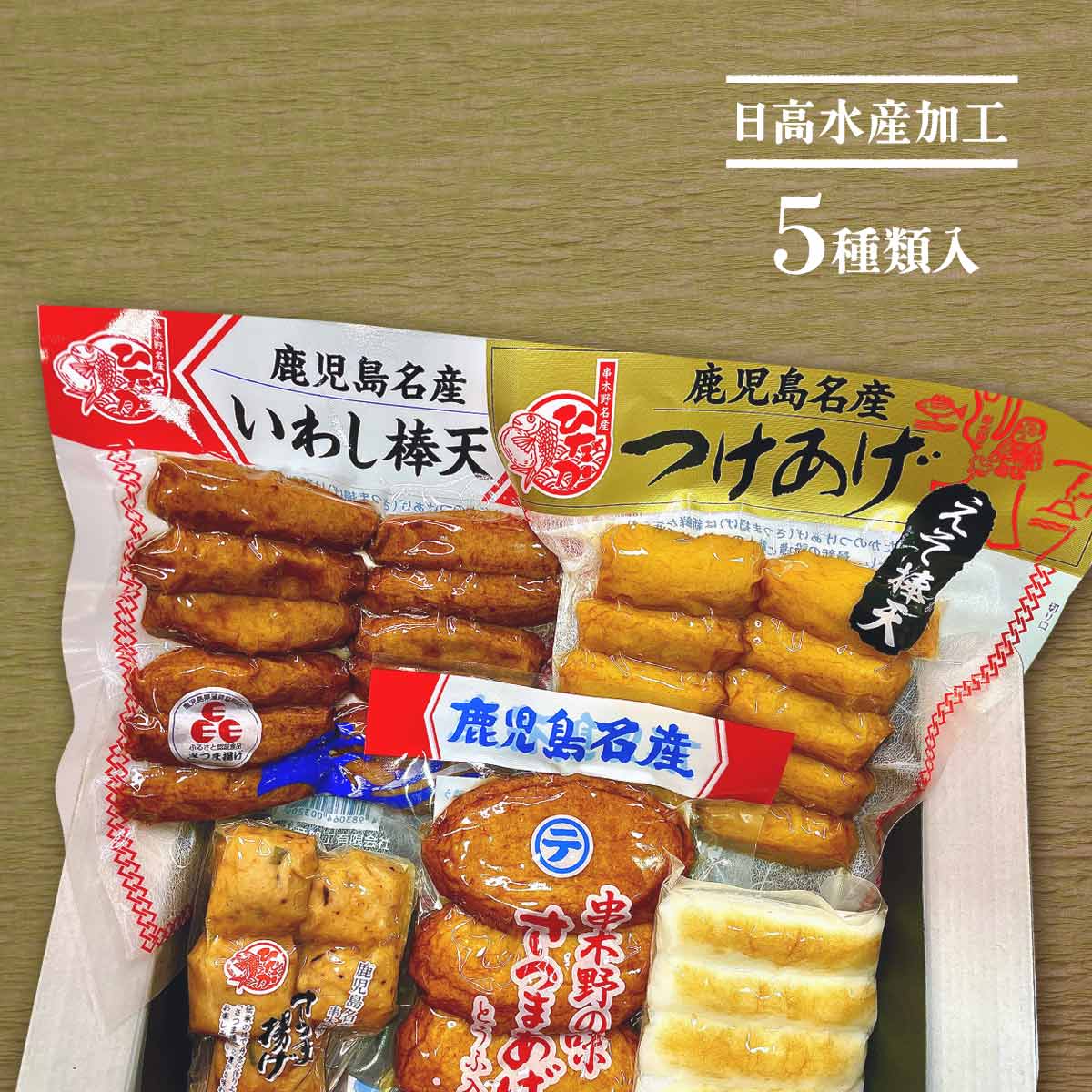 | 原材料 | 【豆腐入りさつま揚げ】魚肉(たら(国産、アメリカ産)、えそ)、豆腐(大豆を含む)、砂糖、地酒(灰持酒)、甘酒、食塩、卵、植物油脂/加工デンプン(小麦由来)、調味料(アミノ酸等)、保存料(ソルビン酸) 【いわし棒天】魚肉(いわし(国産)、あじ、たら、さば、その他)、砂糖、卵、濃縮がらスープ(豚肉、鶏肉を含む)、醸造調味料、甘酒、食塩、地酒(灰持酒)、豆腐(大豆を含む)、ぶどう糖、植物油脂/加エデンプン(小麦由来)、調味料(アミノ酸等)、保存料(ソルビン酸) 【ちぎりかまぼこ】魚肉(輸入)、食塩、醸造調味料、馬鈴薯でんぷん、甘薯でんぷん、砂糖、鰹・むろぶしエキスパウダー、ぶどう糖、卵/加工デンプン(小麦由来)、調味料(アミ/酸等:大豆由来)、保存料(ソルビン酸) 【えそ棒天】魚肉(たら(国産、アメリカ産)、えそ)、砂糖、豆腐(大豆を含む)、卵、食塩、地酒(灰持酒)、植物油脂、鰹・むろぶしエキスパウダー/加工デンプン(小麦由来)、調味料(アミノ酸等)、保存料(ソルビン酸) 【いかにら天 】魚肉(たら(国産、アメリカ産)、えそ)、いか、豆腐(大豆を含む)、砂糖、にら、食塩、植物油脂、地酒(灰持酒)、鰹・むろぶしエキスパウダー、卵/加工デンプン(小麦由来)、調味料(アミノ酸等)、保存料(ソルビン酸) |