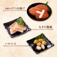 | 内容量 | 豆腐入りさつま揚げ 3枚、いわし棒天 12本、ちぎりかまぼこ 4本、えそ棒天 10本、いかにら天 5個 |