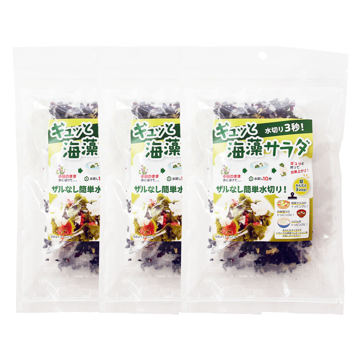超かんたん「3step」で海藻サラダが完成します。