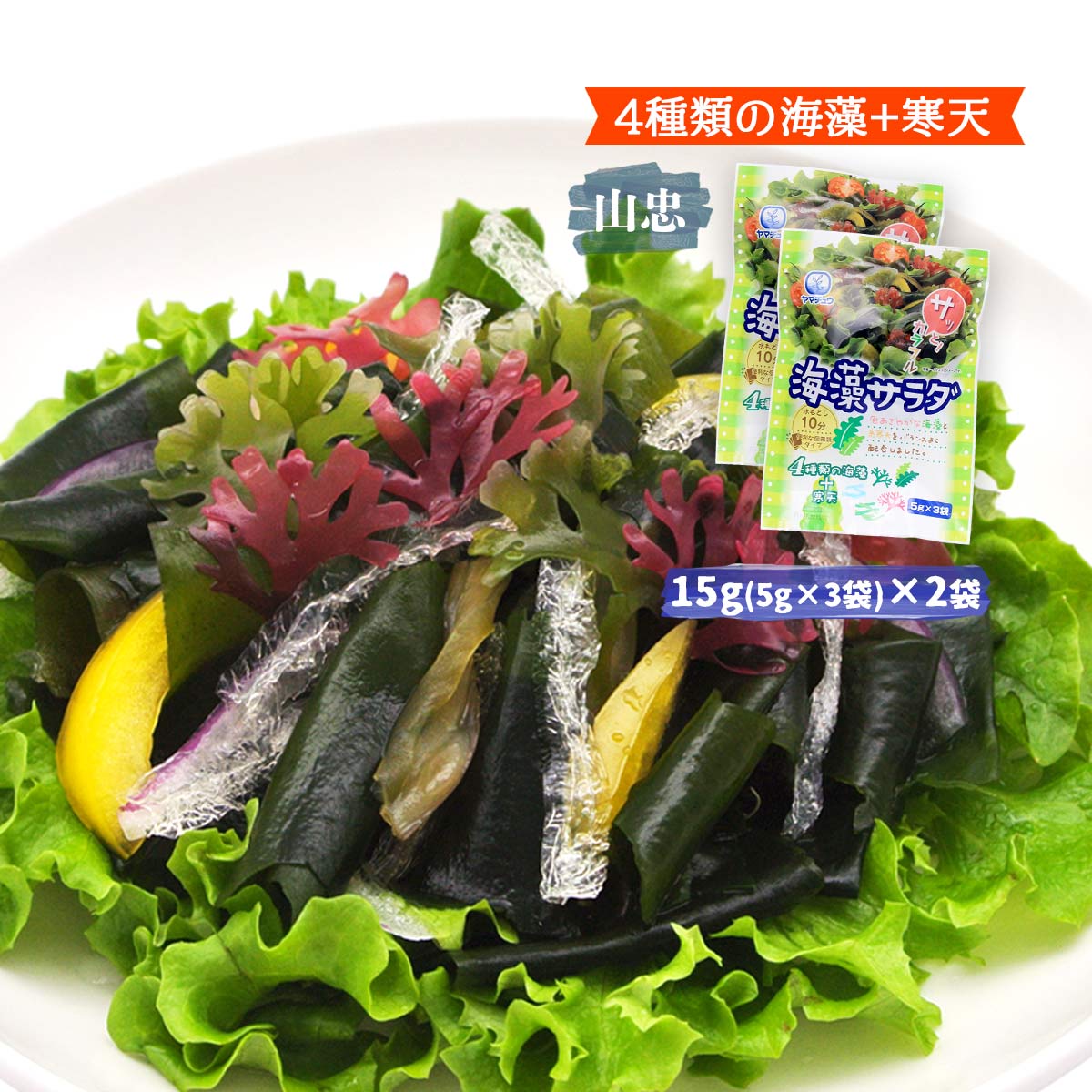送料無料 [山忠] 乾物 海藻サラダ 15g(5g×3袋セット)×2袋セット /サラダ/海藻/糸かんてん/酢の物/海藻スープ/つま/海藻サラダ