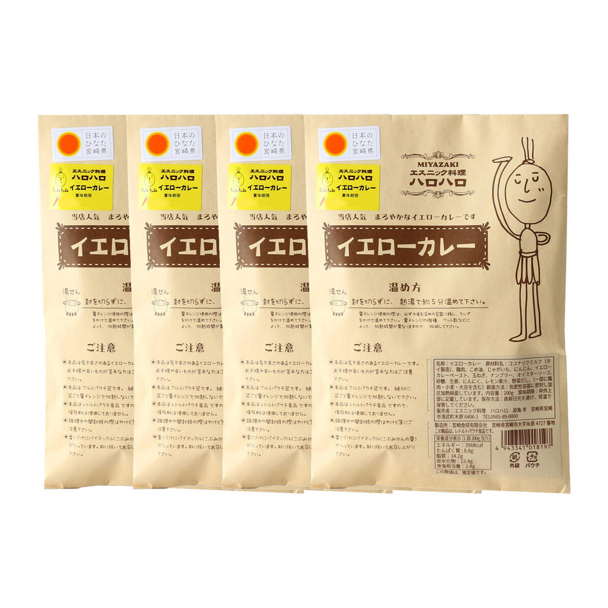 イエローカレー 送料無料 [エスニック料理ハロハロ] イエローカレー 200g×4袋セット /タイカレー レトルトカレー 簡単調理 本格的 風味 旨みたっぷり 宮崎県