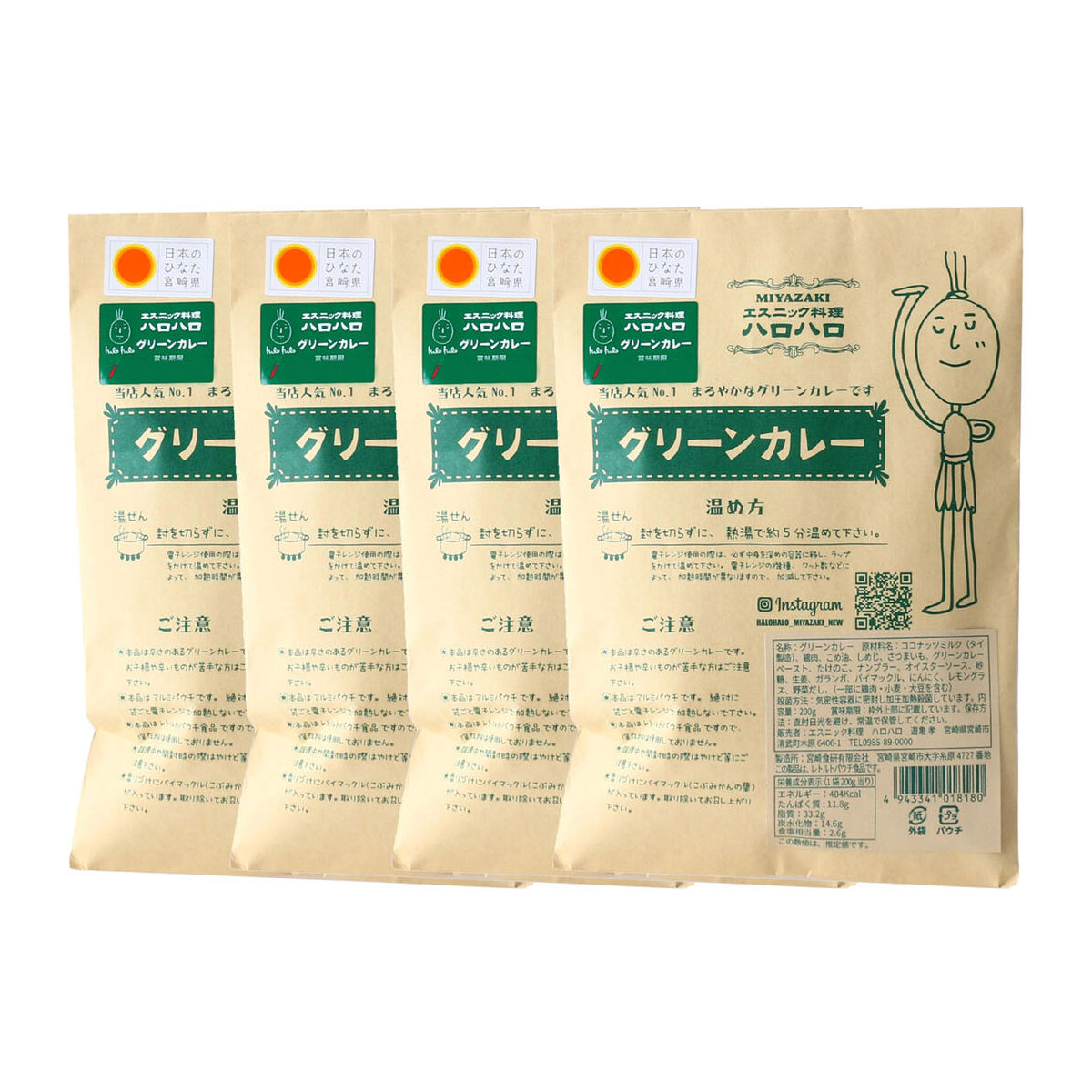 グリーンカレー 送料無料 [エスニック料理ハロハロ] グリーンカレー 200g×4袋セット /タイカレー レトルトカレー 簡単調理 本格的 風味 旨みたっぷり 宮崎県