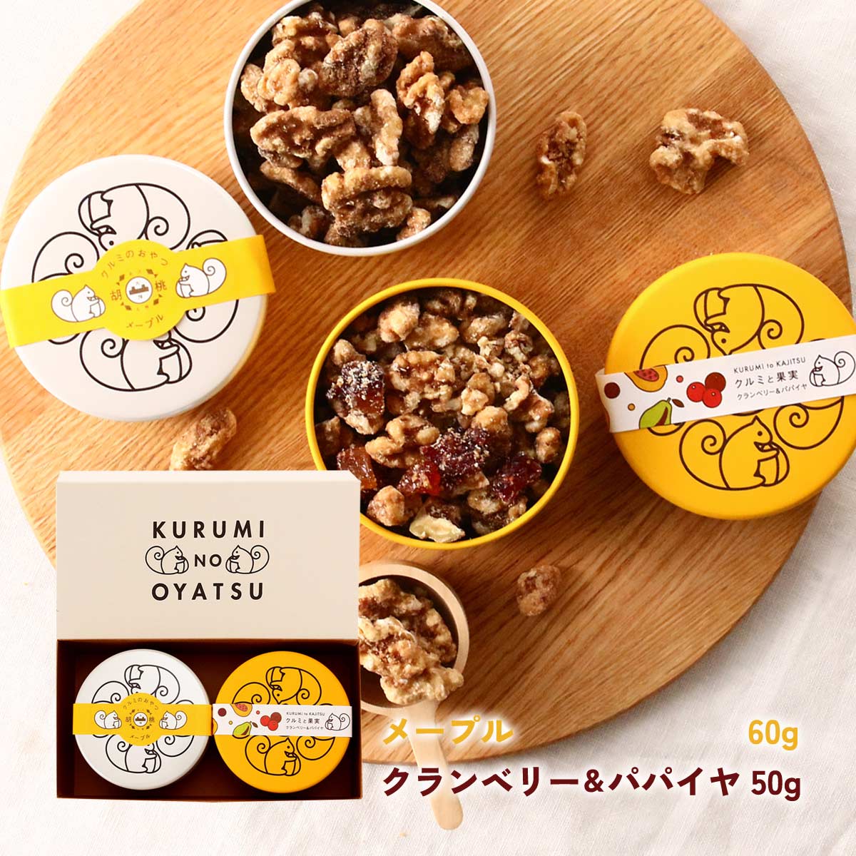 菓子 大畑食品 クルミのおやつとクルミと果実 2種詰合せ メープルシロップ 60g、クランベリー&パパイヤ 50g /ギフト 贈り物 プレゼント おやつ スイーツ くるみ 石川県 クルミ お菓子 胡桃 缶入り りす リス 佃煮や つくだ煮や カリッと サクッと やさしい 可愛い リス缶 金沢