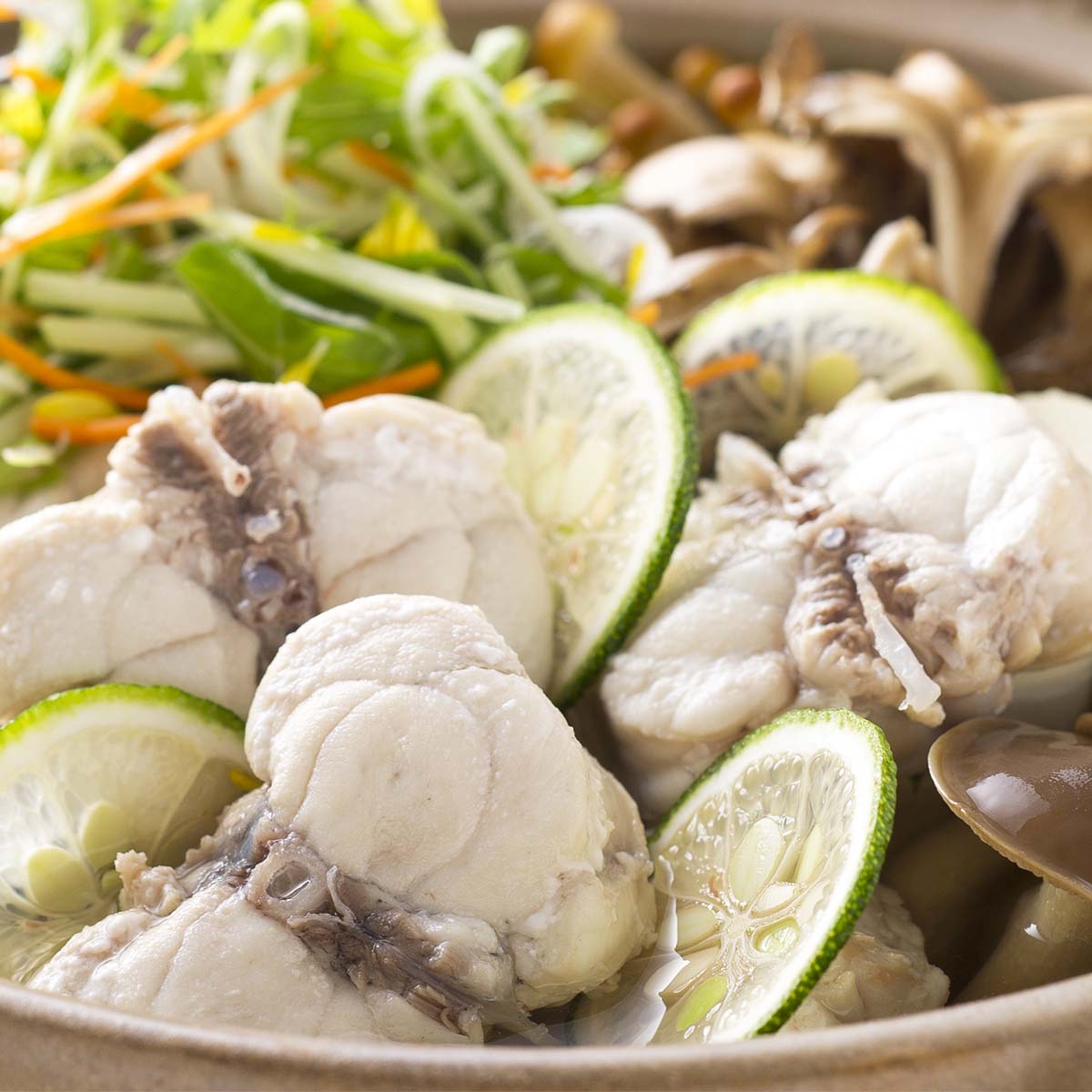| 原材料 | 【みがきふぐ】クロサバフグ、[フグ処理施設届出済証(浜保護1834号)] 【鍋の素】しょうゆ、マトウダイエキス、かつお節エキス、アミノ酸液、砂糖、チキンエキス、ポーク・チキン香味オイル、たん白加水分解物、食塩/調味料(アミノ酸等)、(一部に小麦・大豆・鶏肉・豚肉を含む) |