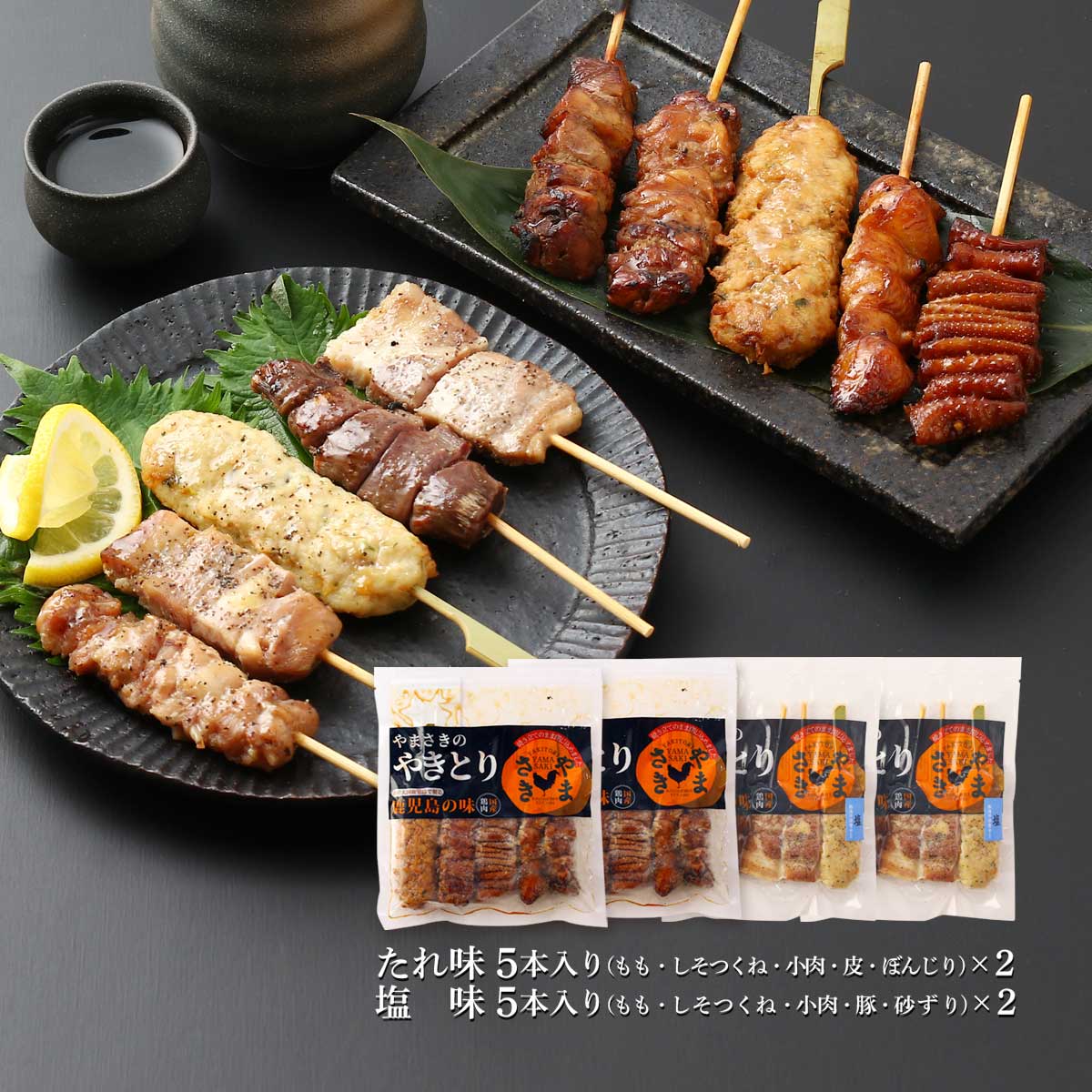 やきとり詰合せ やまさき やまさきの焼き鳥食べ比べセット たれ味 5本入り(もも、しそつくね、小肉、皮、ぼんじり)×2、塩味 5本入り(もも、しそつくね、豚、砂ずり、小肉)×2 /簡単 便利 やきとり 焼鳥 おつまみ 酒の肴 鹿児島 焼鳥屋 飲み屋 人気店 姶良 やまさきの焼鳥 レンチン 時短 家飲み ホームパーティー バラエティパック 手焼き お持ち帰り 居酒屋 手焼き 晩酌 秘伝のたれ